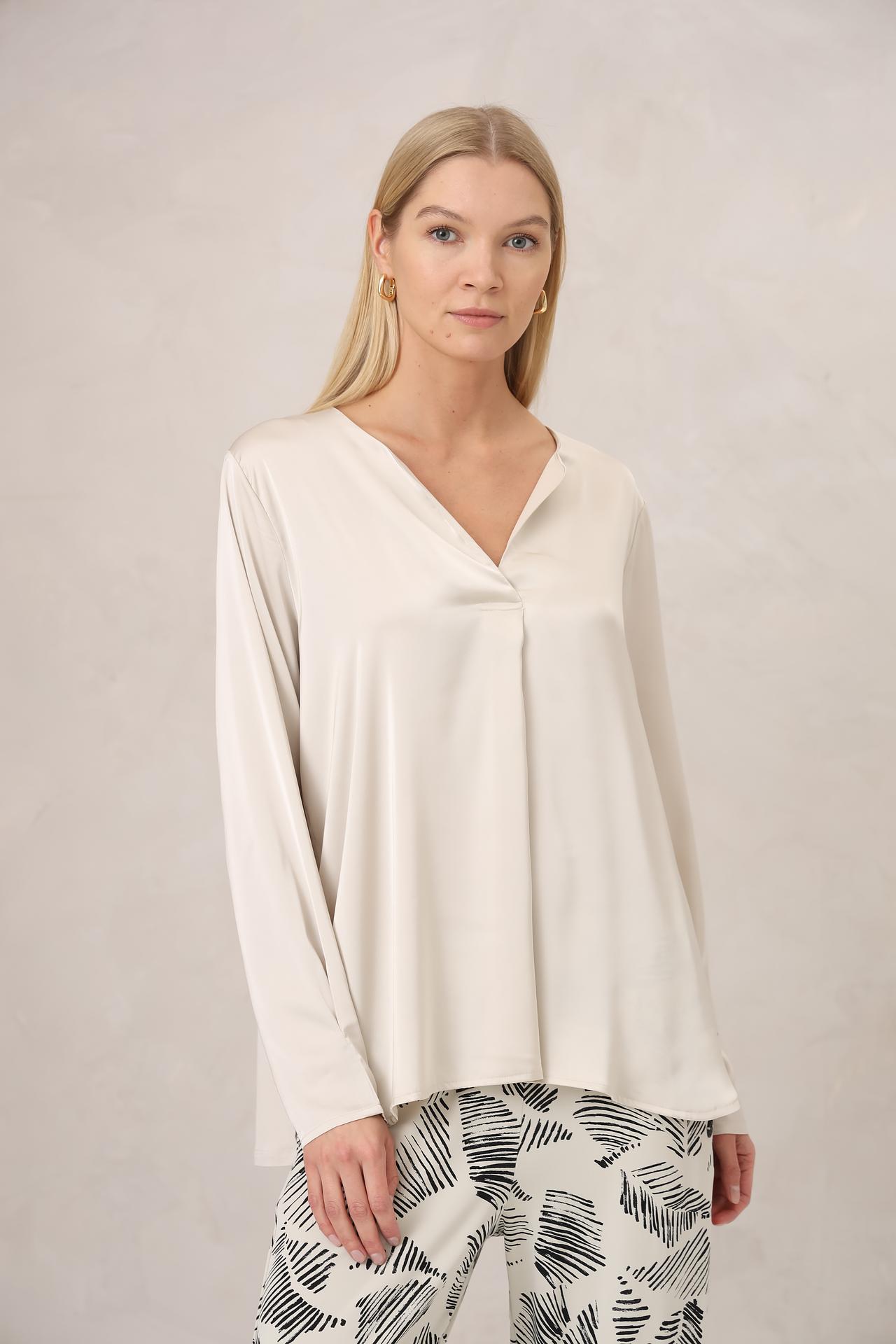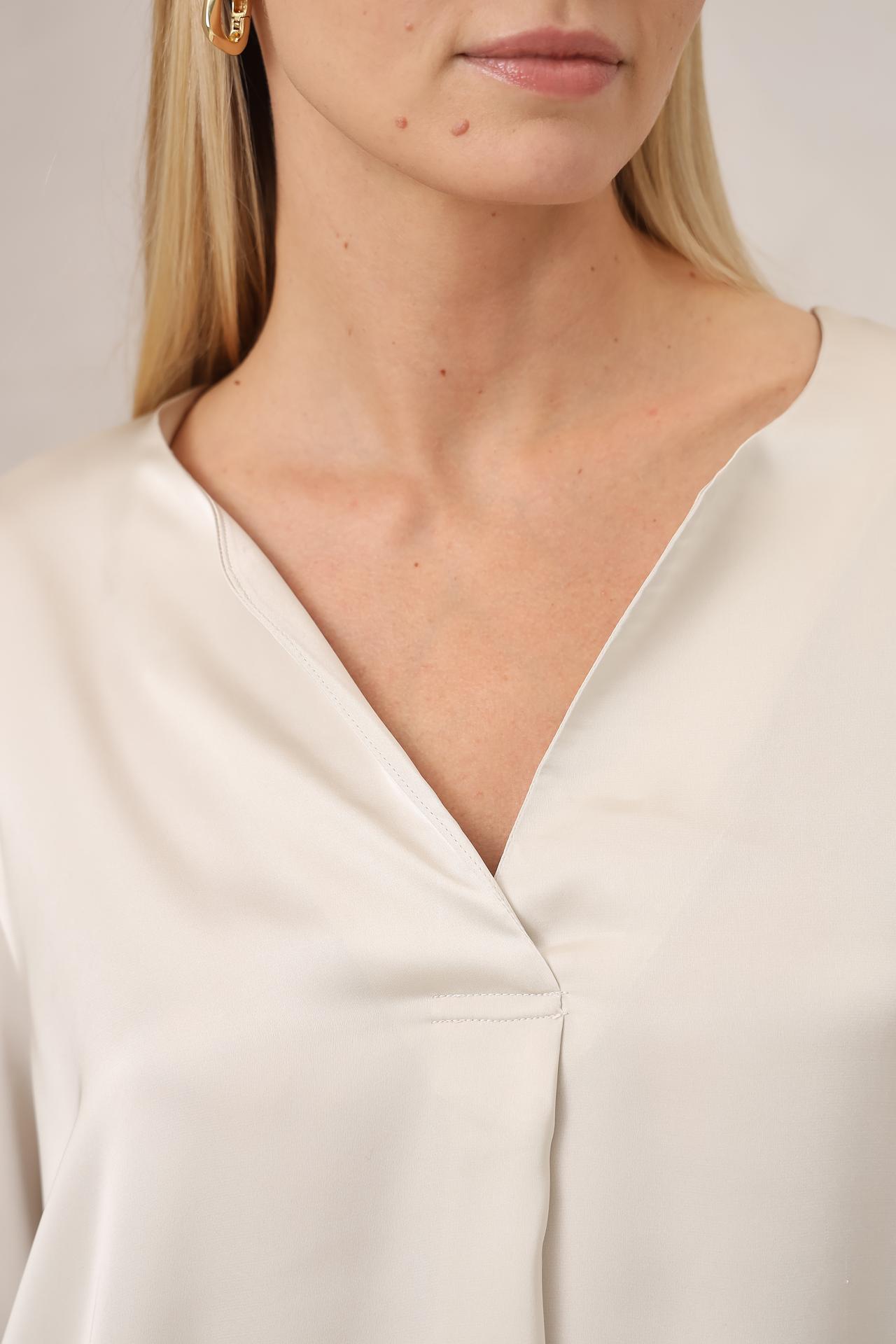 - Универсальный дизайн: Классический бежевый цвет и лаконичный крой позволяют этой блузе стать базовым элементом гардероба. Идеально подходит для офиса, повседневных выходов или особых случаев.