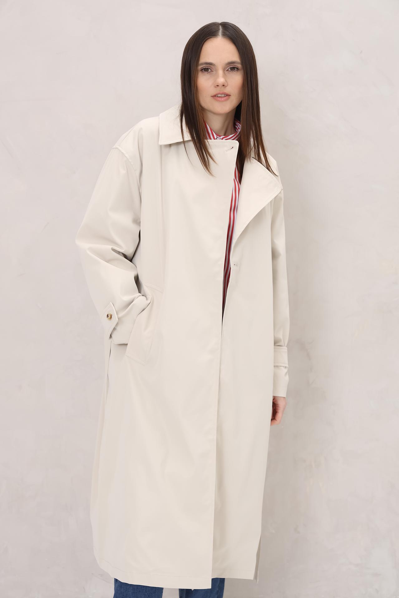 - Классический дизайн: Универсальный бежевый оттенок легко сочетается с другими цветами в вашем гардеробе. Плащ имеет классический воротник и манжеты на рукавах.