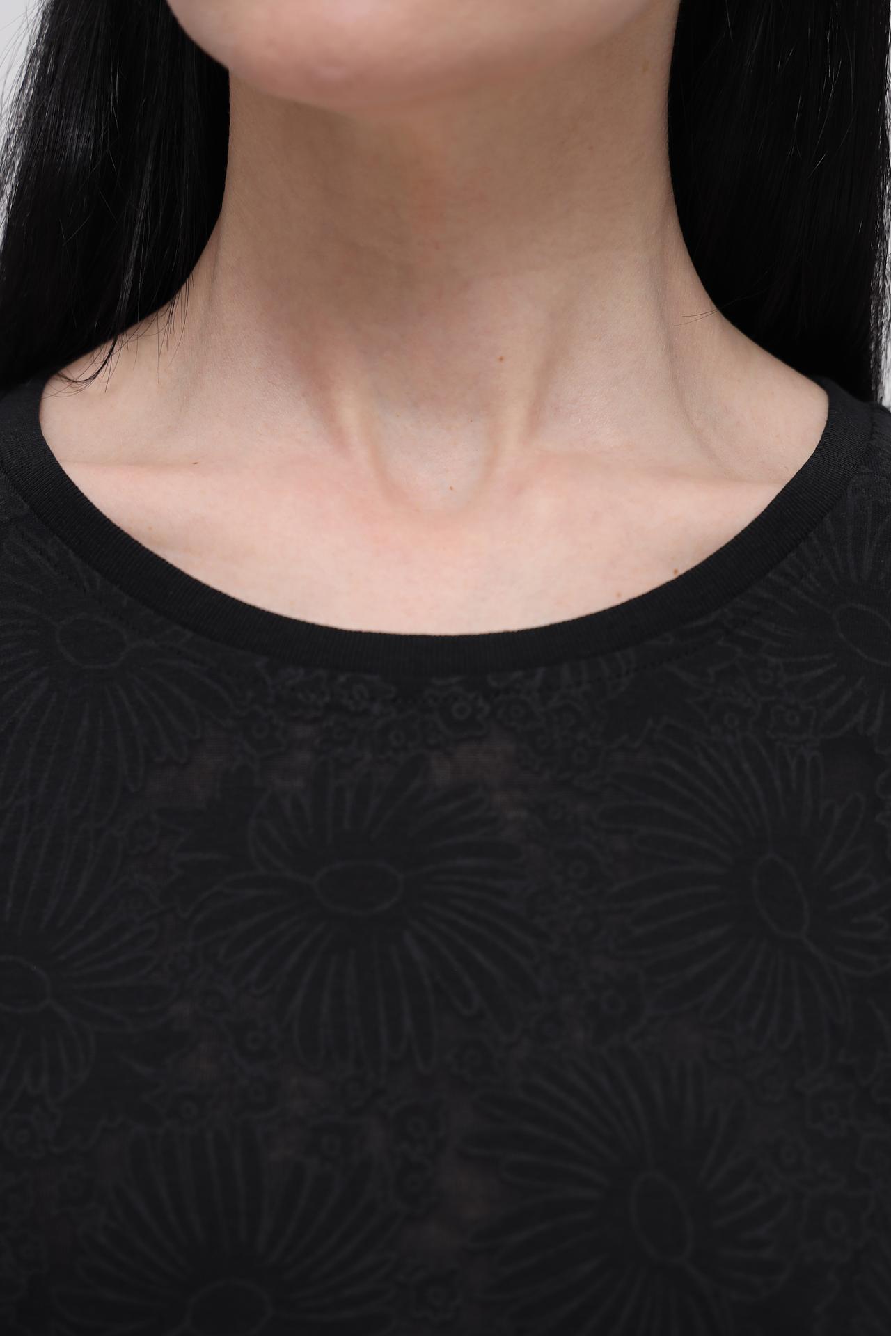 - Дизайн и крой: Свободный крой и короткий рукав гарантируют максимальный комфорт и свободу движений. Круглый вырез горловины подчеркивает элегантность модели. Оригинальный принт на ткани добавляет изюминку и делает блузу заметной.