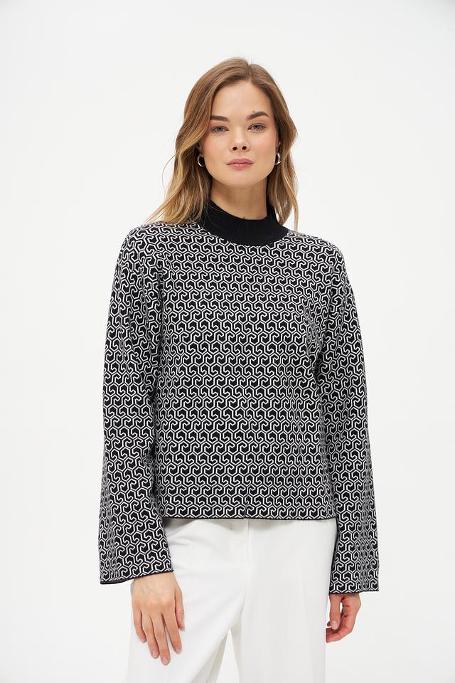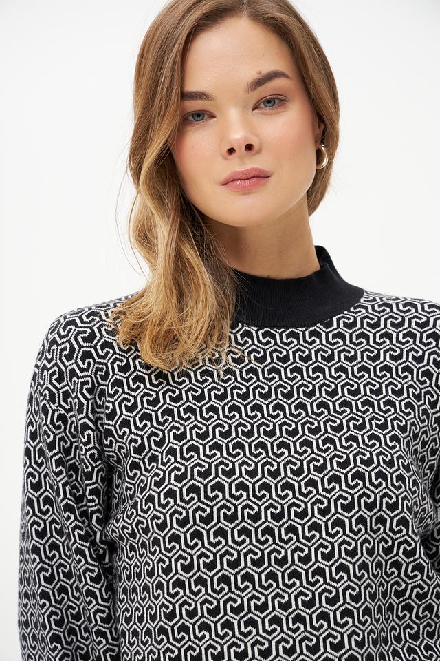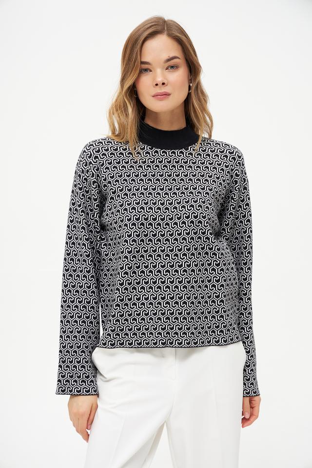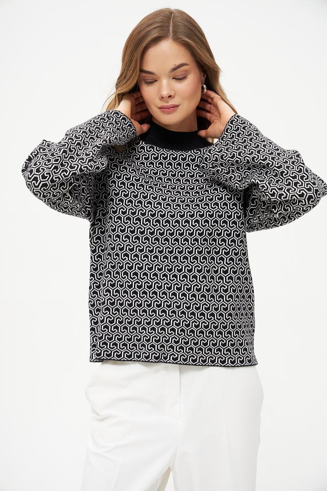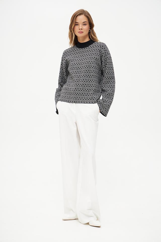 Женский пуловер Broadway чёрно-белого цвета с оригинальным геометрическим принтом станет стильным дополнением к вашему гардеробу. Модель выполнена из мягкого трикотажа с добавлением вискозы, полиэстера и нейлона. Состав: вискоза 50%, полиэстер 28%, нейлон 22%