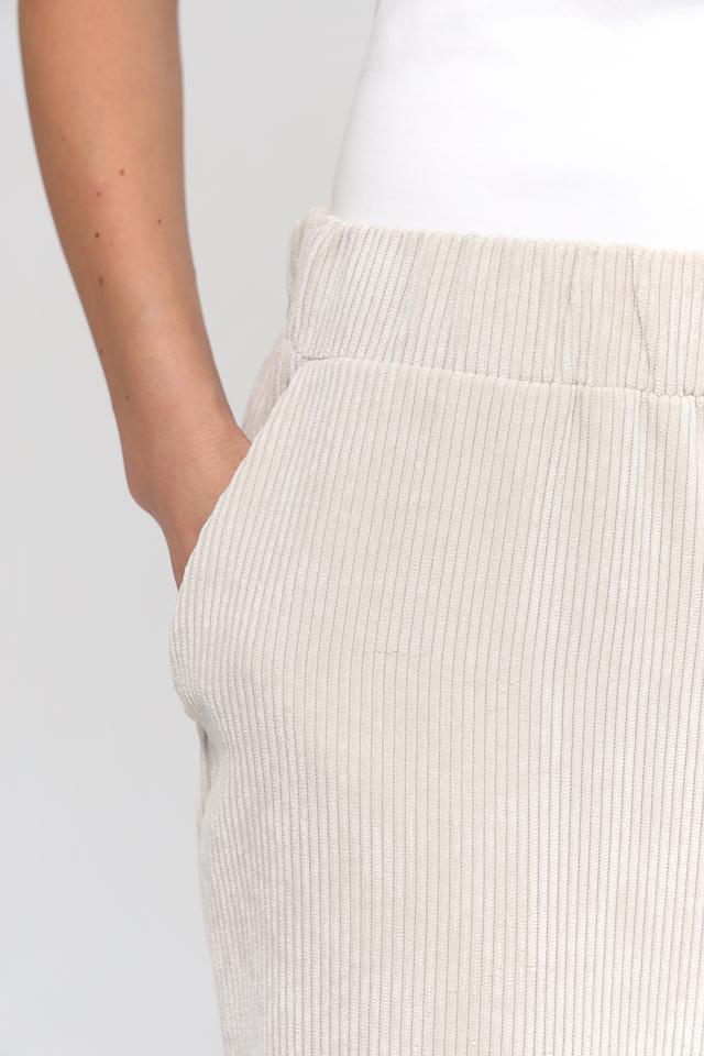 Брюки имеют свободный крой и широкие штанины, что обеспечивает максимальный комфорт в носке и позволяет создавать элегантные образы. Эластичный пояс гарантирует идеальную посадку по фигуре.