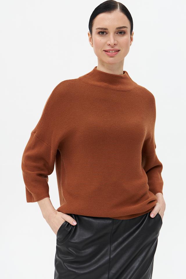 Женский пуловер Broadway кофейного цвета с рукавом 3/4 и воротником-стойкой. Изготовлен из мягкого акрила и нейлона, обеспечивающего комфорт и удобство в носке. Состав: акрил 60%, нейлон 40%
