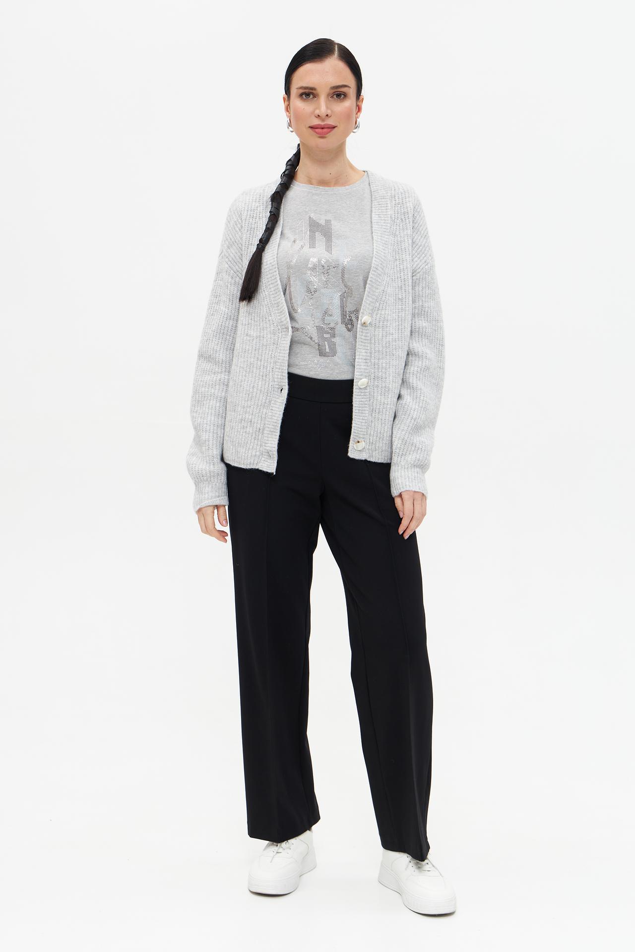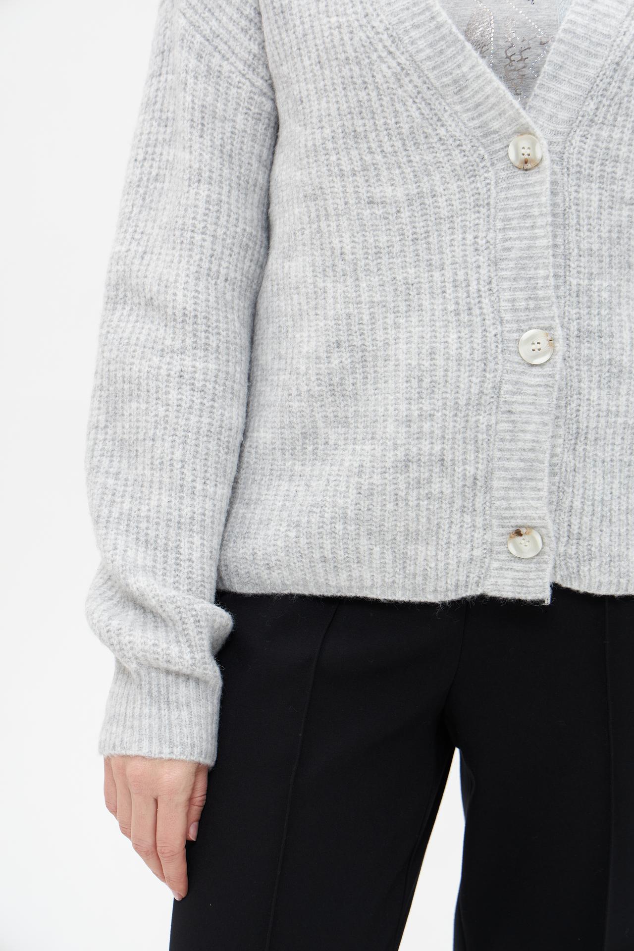 - Дизайн: Классический жакет с V-образным вырезом и застежкой на пуговицы. Прямой крой и универсальная длина делают его подходящим для различных типов фигур. Рельефная вязка придает изделию дополнительную текстуру и изысканность.
