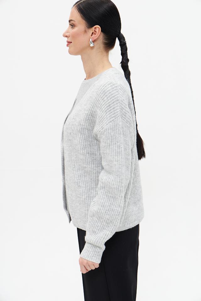 Серый вязаный жакет от Broadway – это стильное и комфортное решение для создания уютных образов. Модель выполнена из мягкого трикотажа с V-образным вырезом и застёжкой на пуговицы. Состав: полиэстер 54%, акрил 38%, шерсть 5%, спандекс 3%