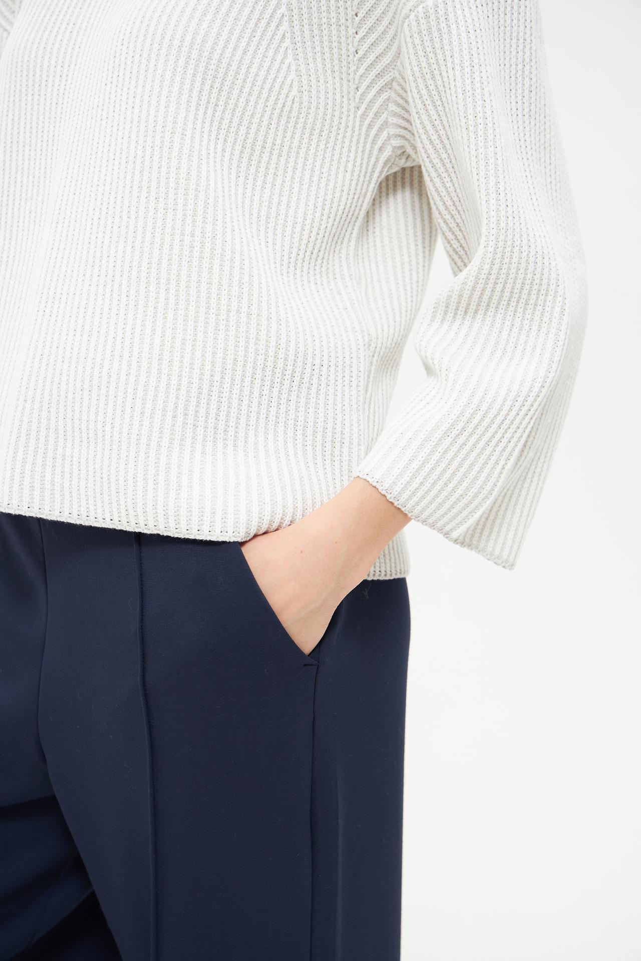- Универсальность: Модель подходит для создания как повседневных, так и более формальных образов. Пуловер прекрасно сочетается с брюками, юбками и джинсами, дополняя любой стиль.