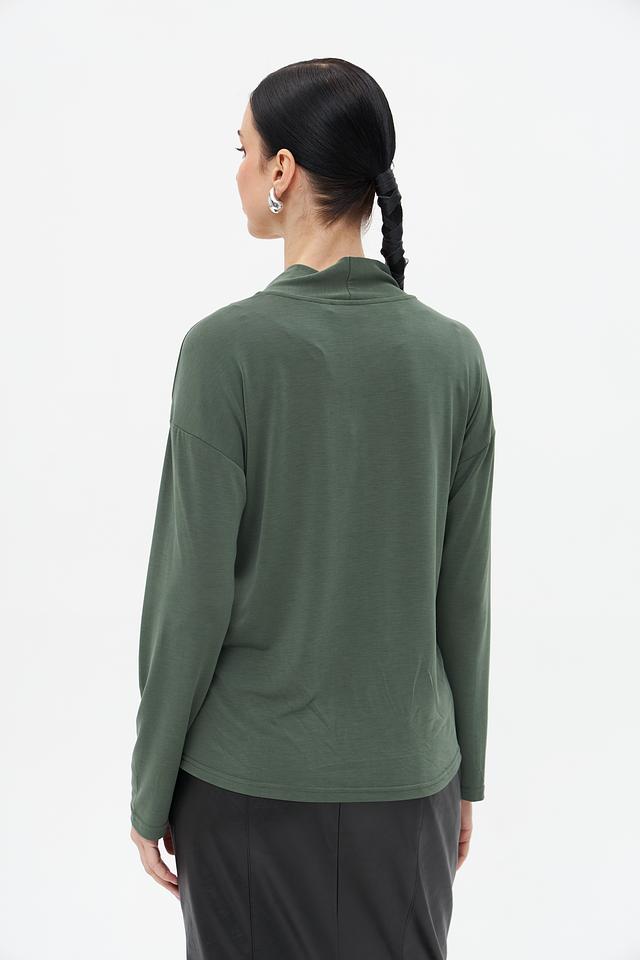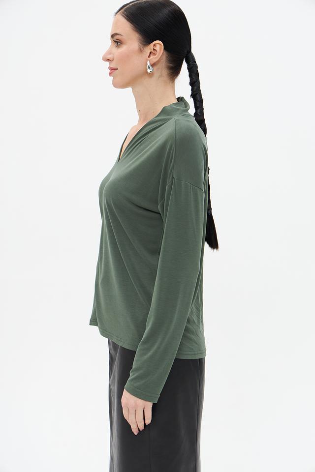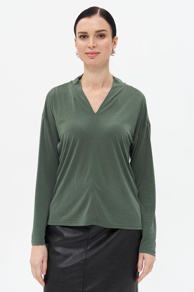 Женская футболка Broadway хаки цвета с V-образным вырезом и длинными рукавами. Изготовлена из мягкого и приятного к телу модала с добавлением полиэстера, обеспечивающего комфорт и износостойкость. Состав: модал 64%, полиэстер 36%