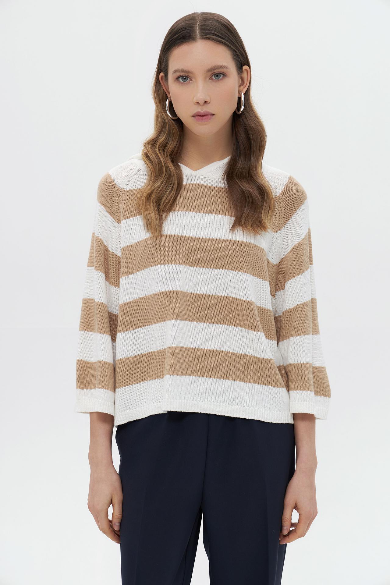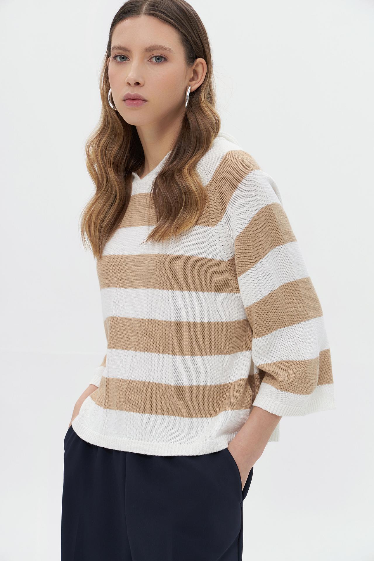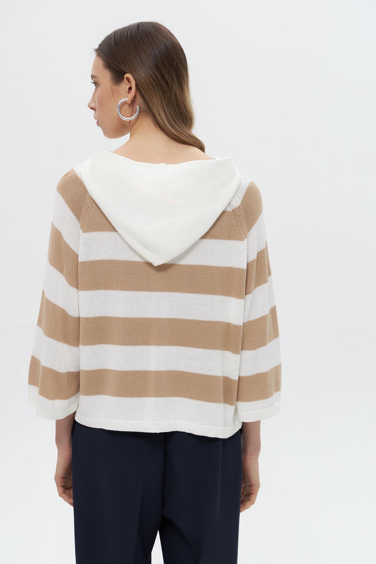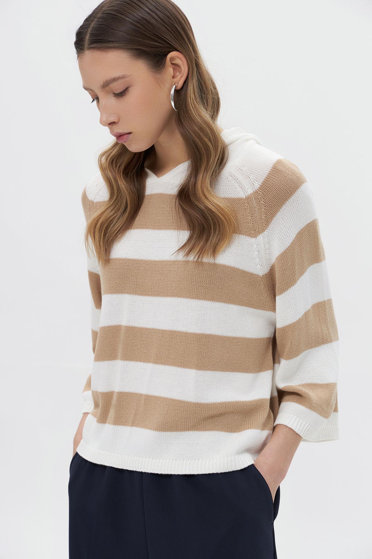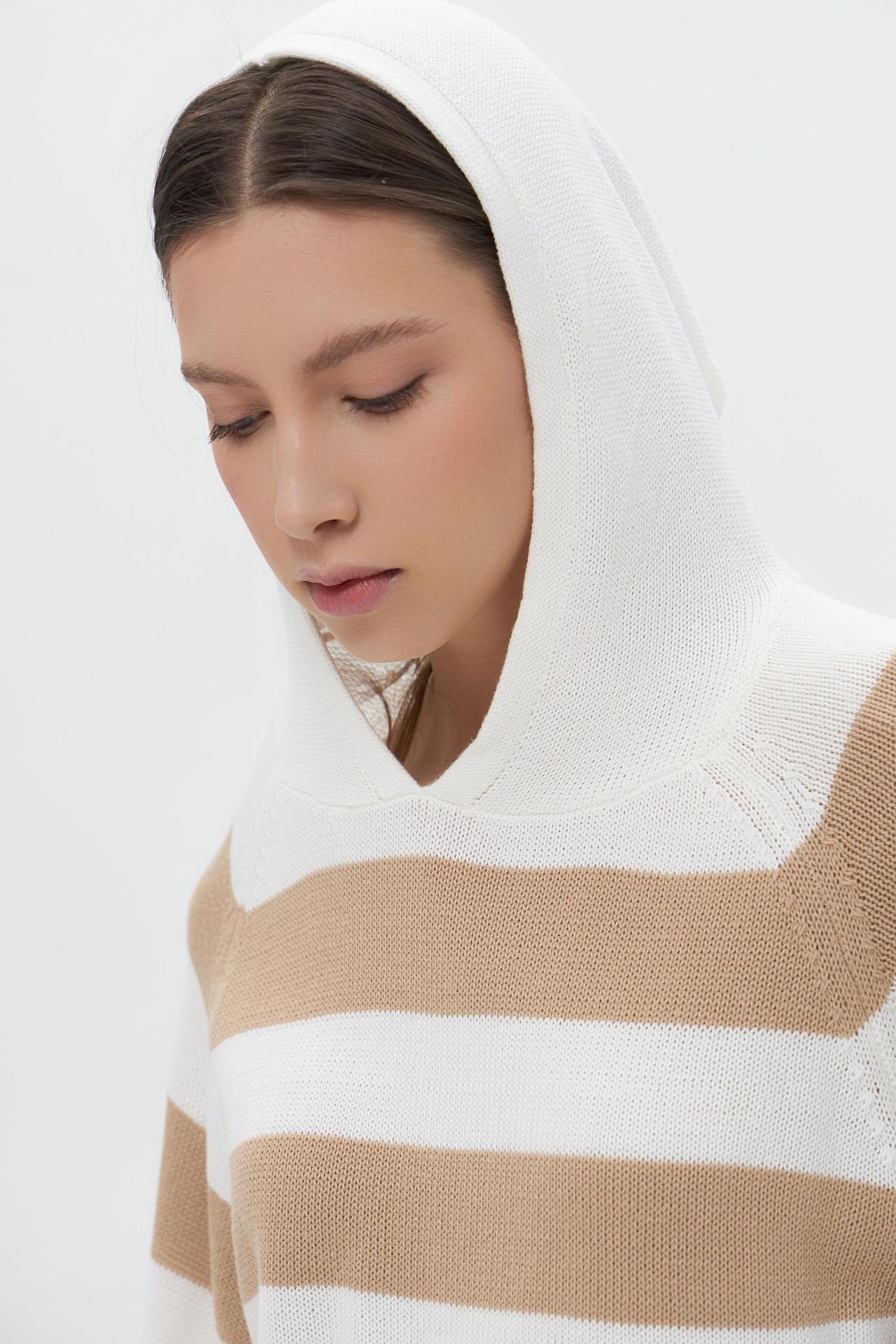 Пуловер Broadway бежево-белый полосатый с капюшоном