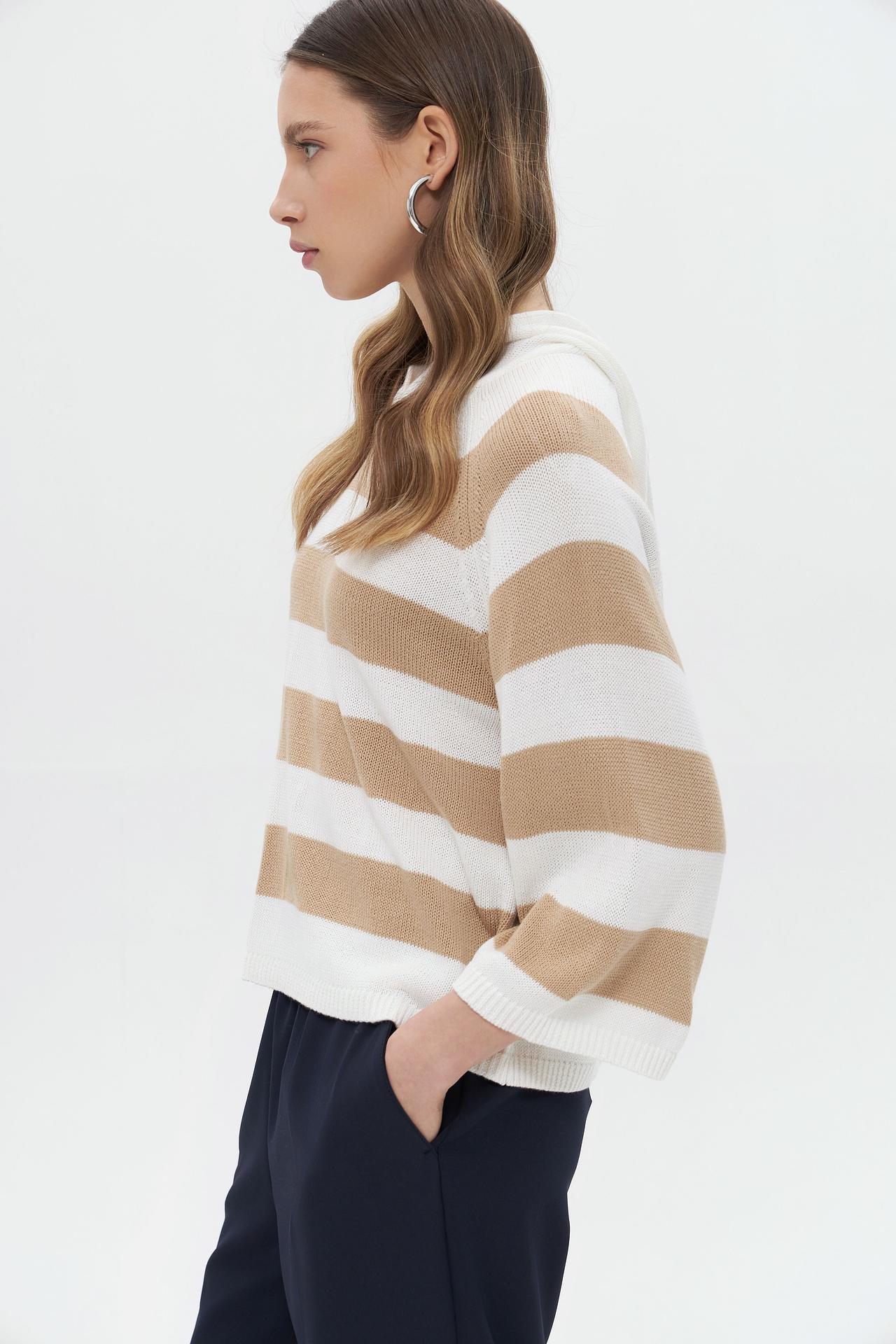 Пуловер Broadway женский в полоску сочетает в себе классический стиль и современный комфорт. Модель выполнена в контрастной белой и бежевой полоске, придающей изделию свежий и динамичный вид. Этот женский пуловер идеально подходит для создания расслабленных повседневных образов и легко комбинируется с различными элементами гардероба.