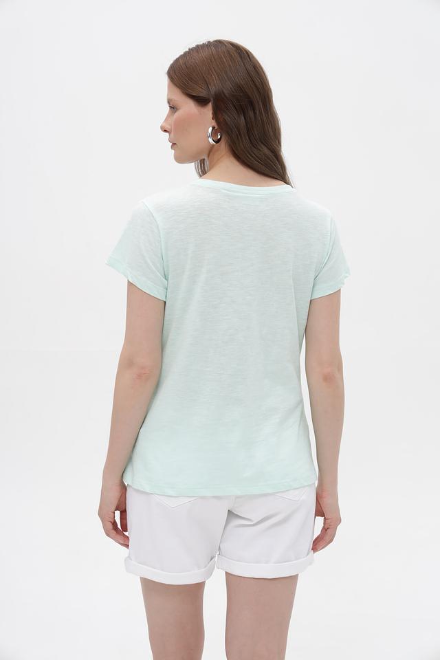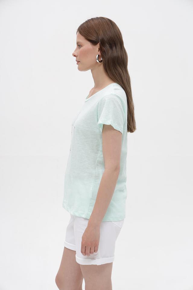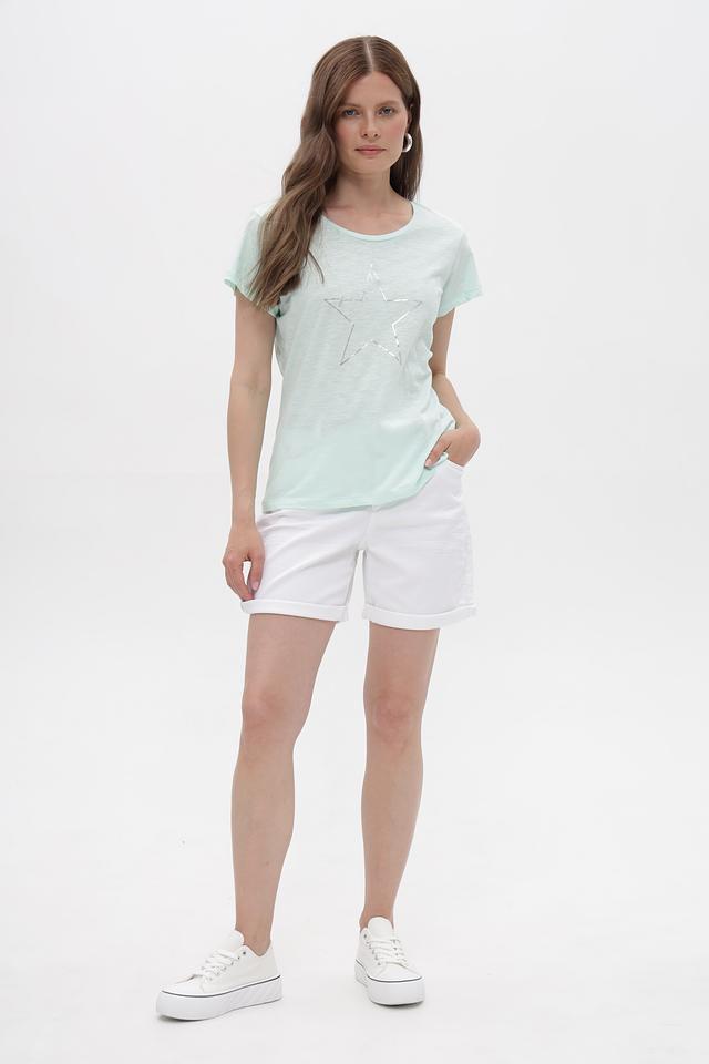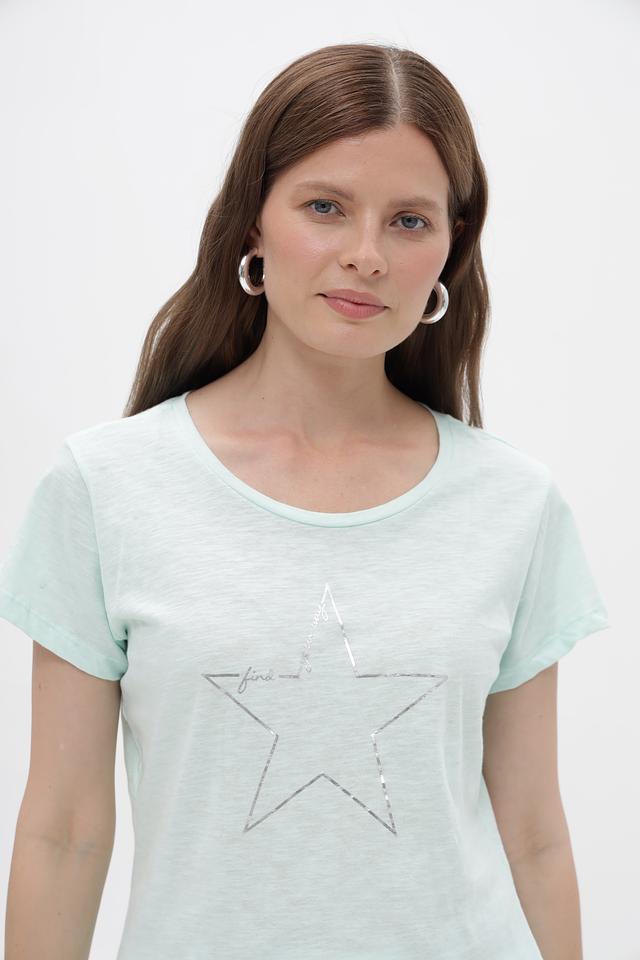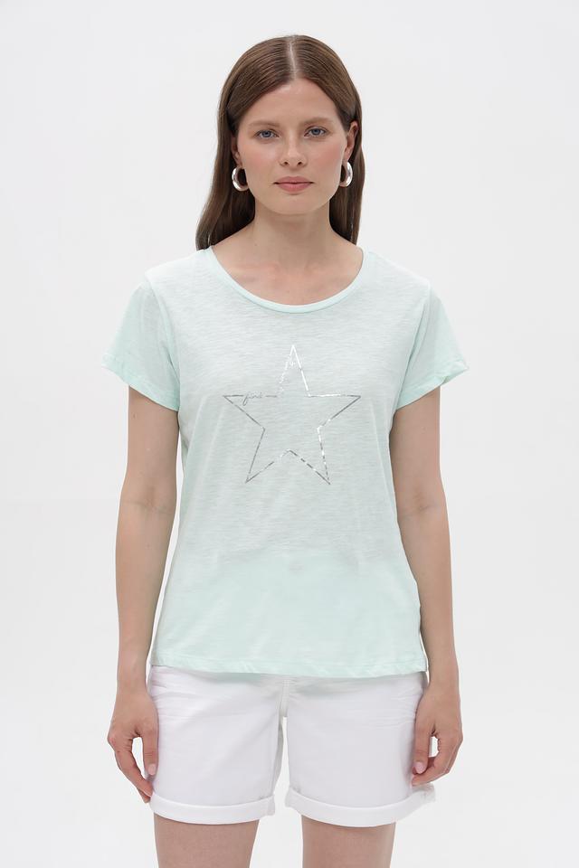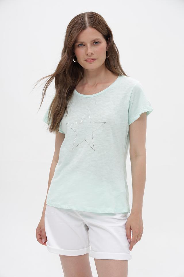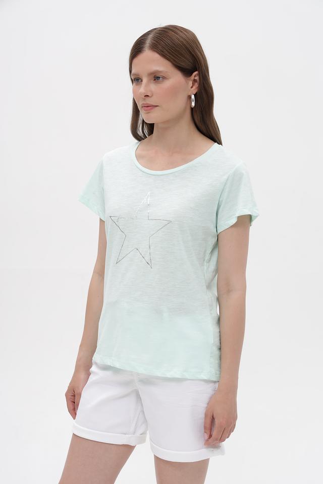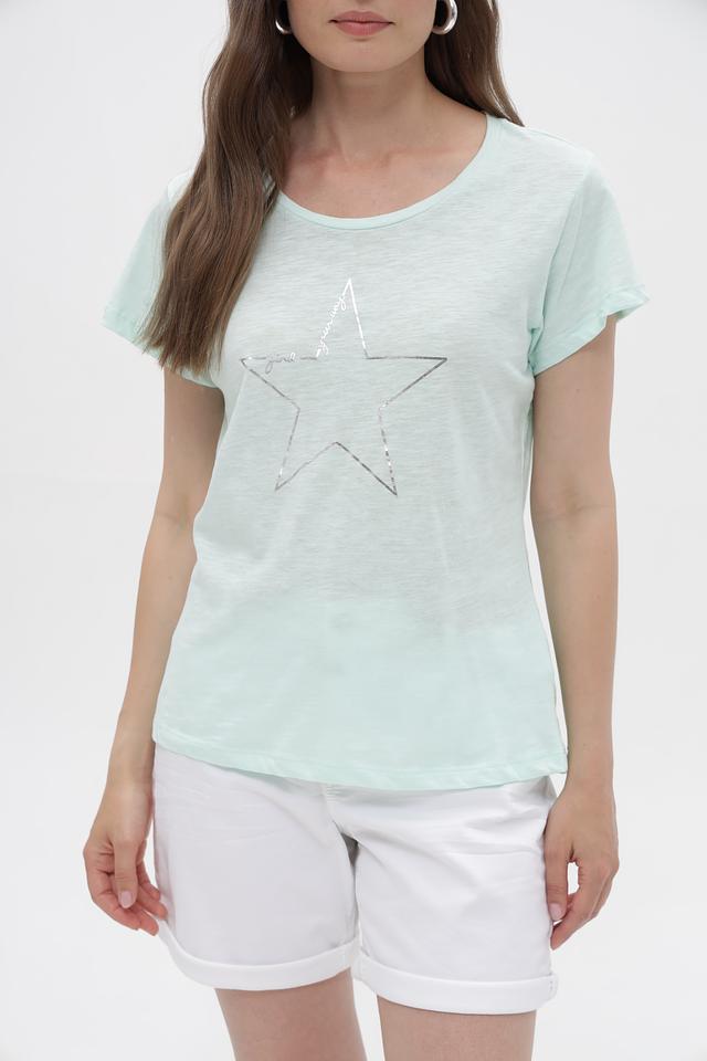 Мятная футболка Broadway из 100% хлопка с декоративной звездой. Женственная модель свободного кроя станет отличным дополнением к вашему образу. Изготовлена из натурального хлопка, обеспечивающего комфорт в носке. Состав: хлопок 100%