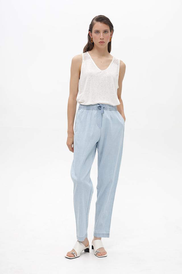 Женские джинсы Broadway голубого цвета — это удобная и стильная модель с эластичным поясом и завязками. Изготовлены из мягкого и приятного к телу сочетания лиоцела и хлопка. Состав: лиоцел 65%, хлопок 35%