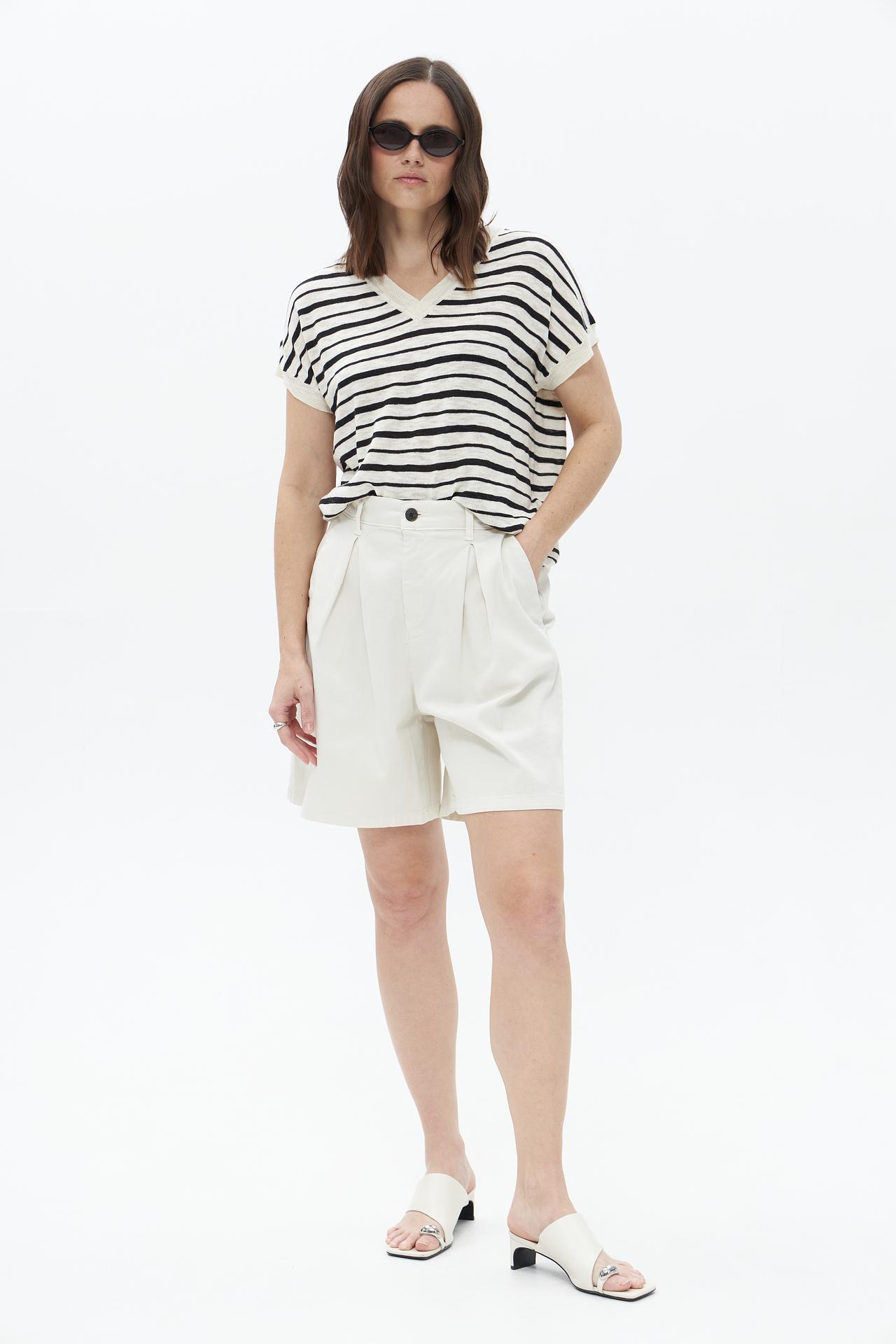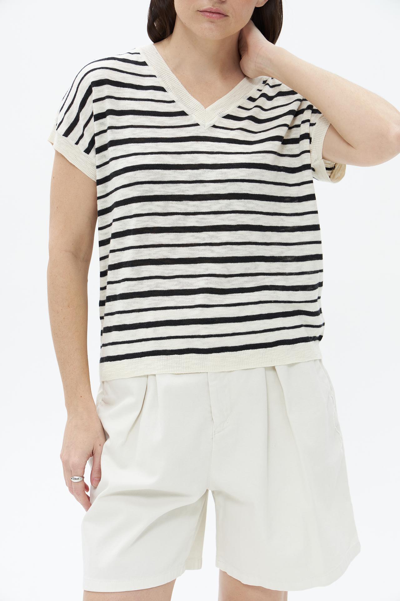 Этот стильный пуловер в полоску станет отличным дополнением вашего гардероба, сочетаясь с джинсами, шортами или юбками. Подчеркните свой вкус с помощью этого модного предмета одежды.