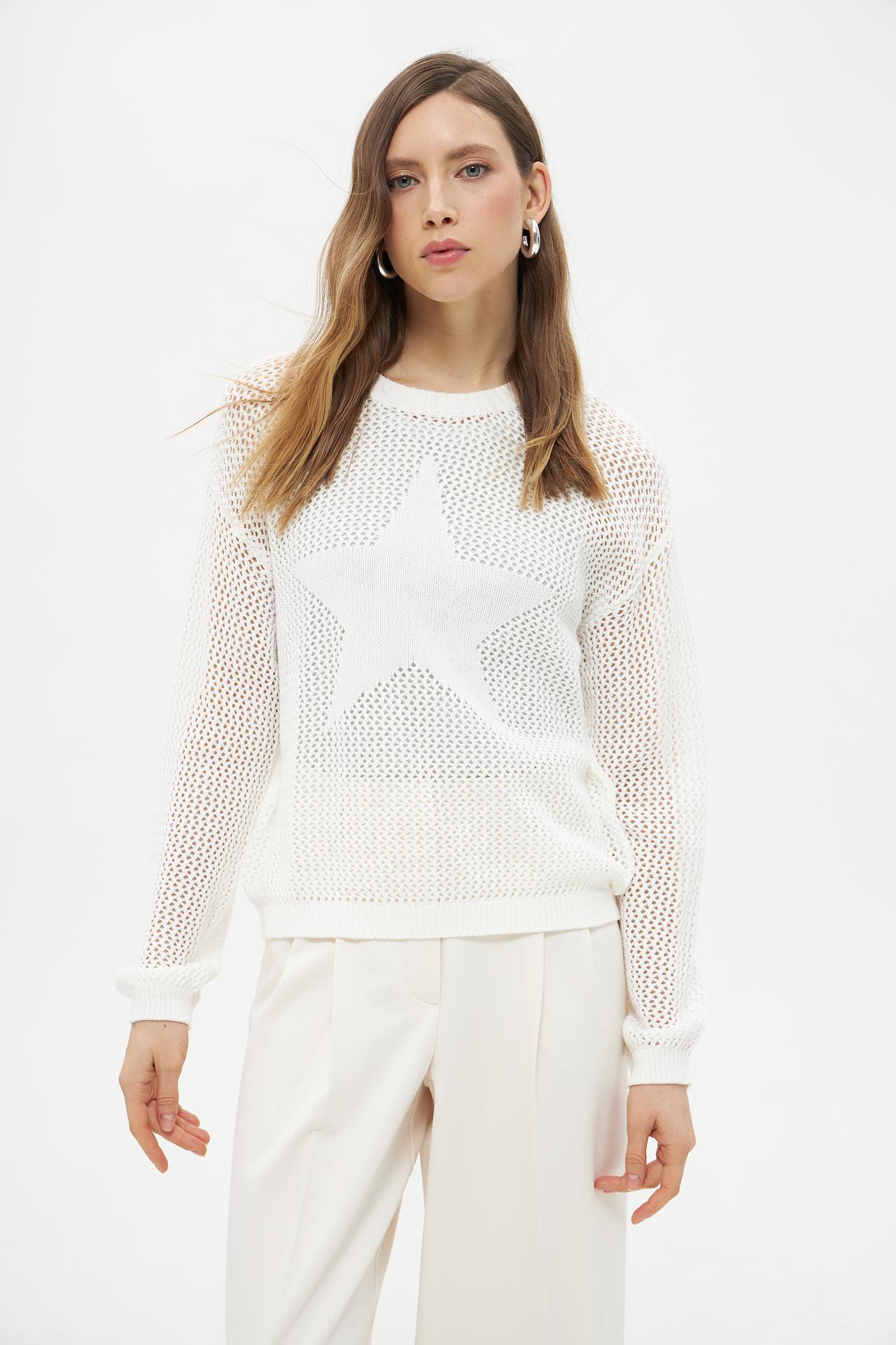 - Оригинальный дизайн: Пуловер украшен крупной звездой, что делает его ярким акцентом в вашем образе.