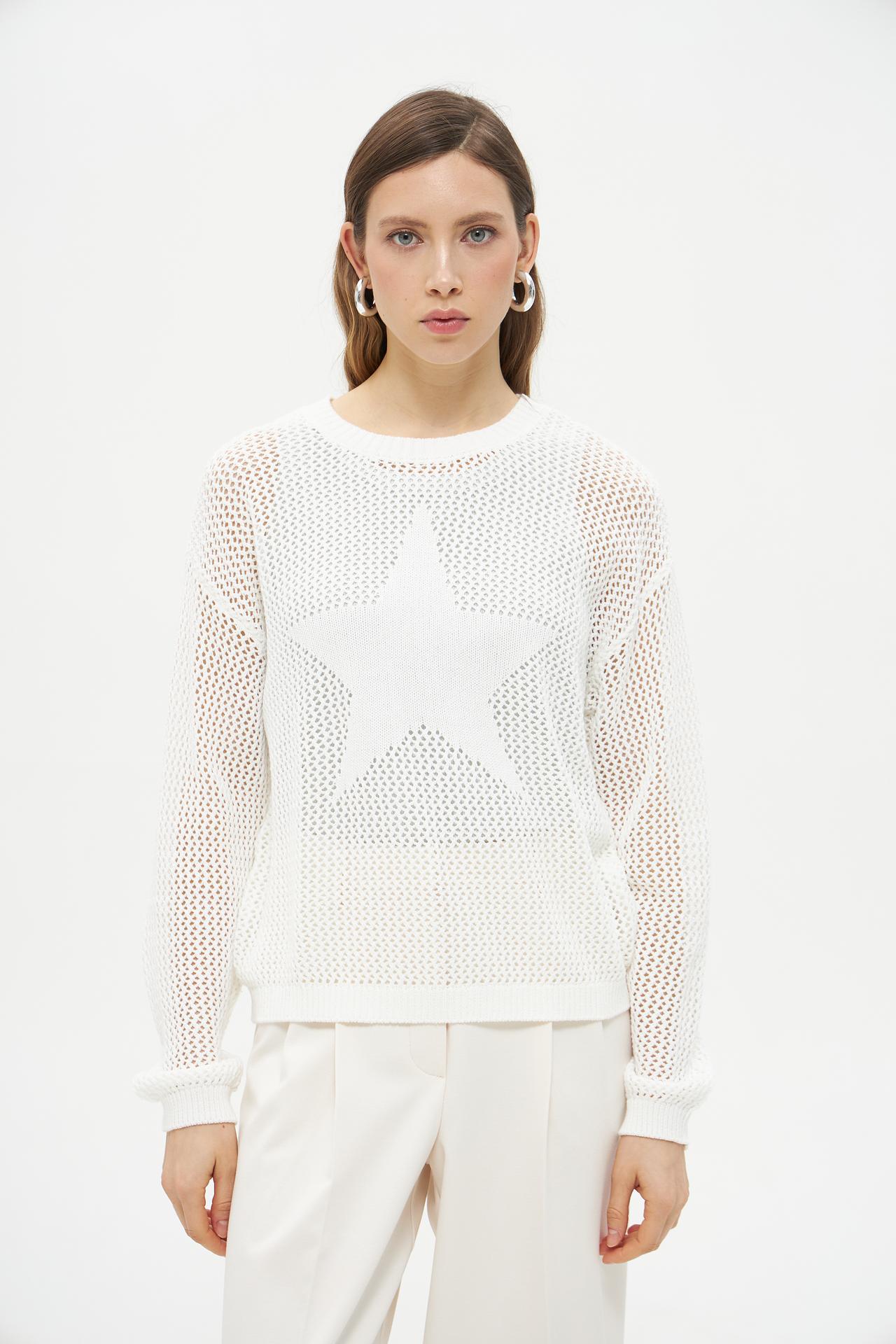 Легкий и воздушный белый пуловер Broadway станет прекрасным дополнением к вашему гардеробу. Выполненный из смеси хлопка и акрила, он обеспечивает комфорт и приятные ощущения на коже. Этот стильный джемпер с декоративной вязкой и акцентным узором в виде звезды идеально подойдет для создания модных и непринужденных образов. Прекрасный выбор для тех, кто ценит комфорт и стиль.