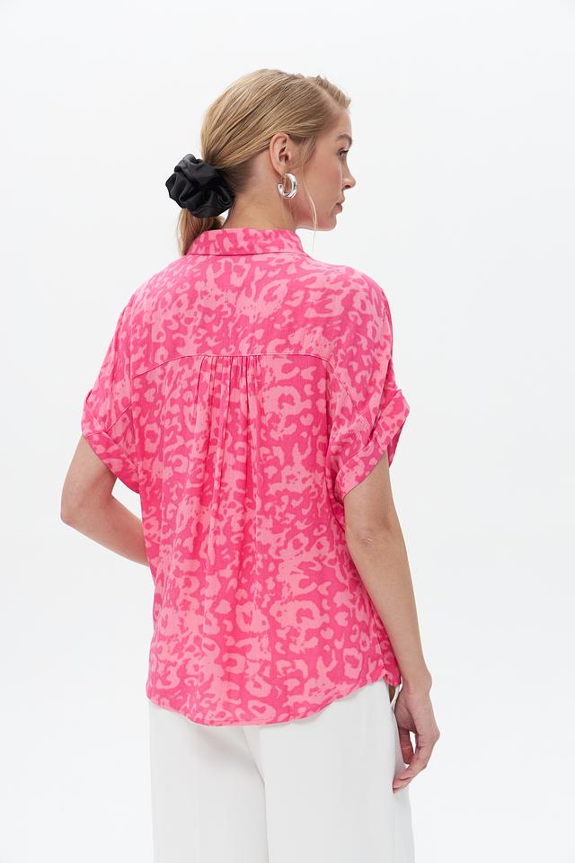 Эта блузка от Broadway станет ярким акцентом в вашем гардеробе. Выполнена в насыщенном фуксиевом цвете с эффектным леопардовым принтом, который придаёт образу динамичность и индивидуальность.