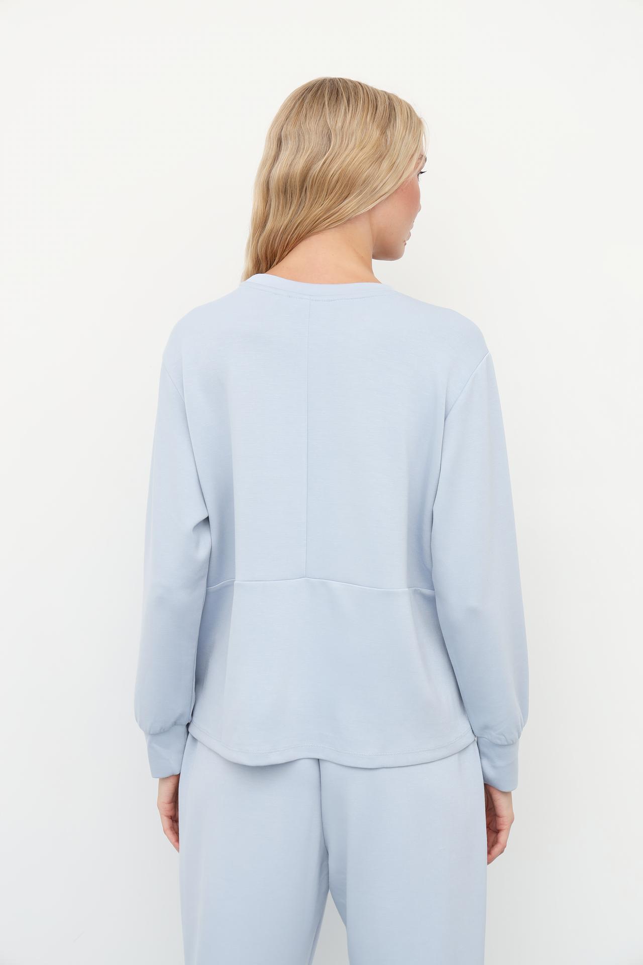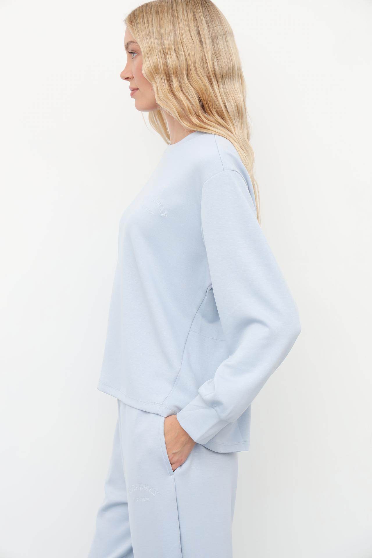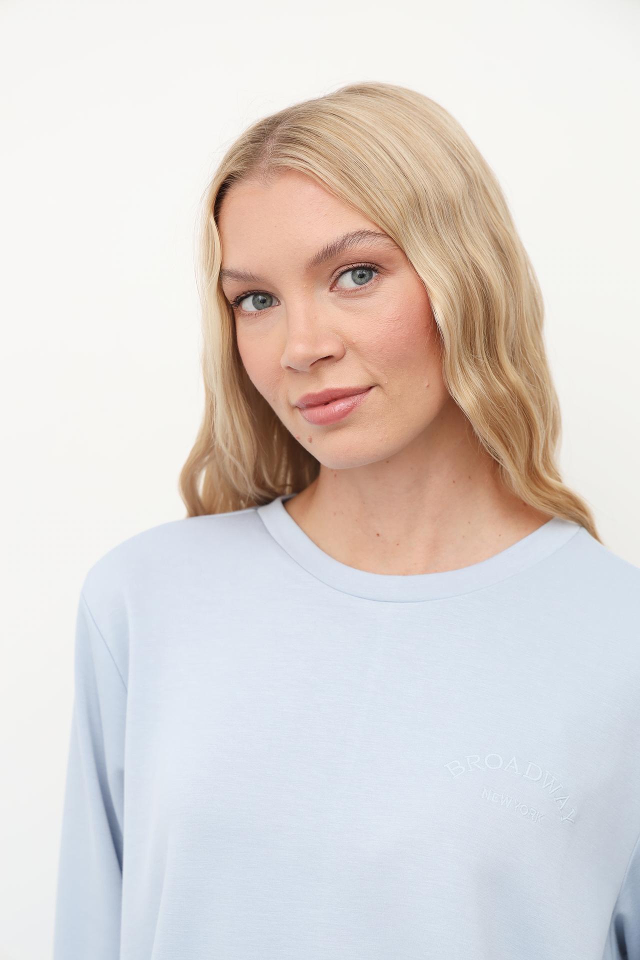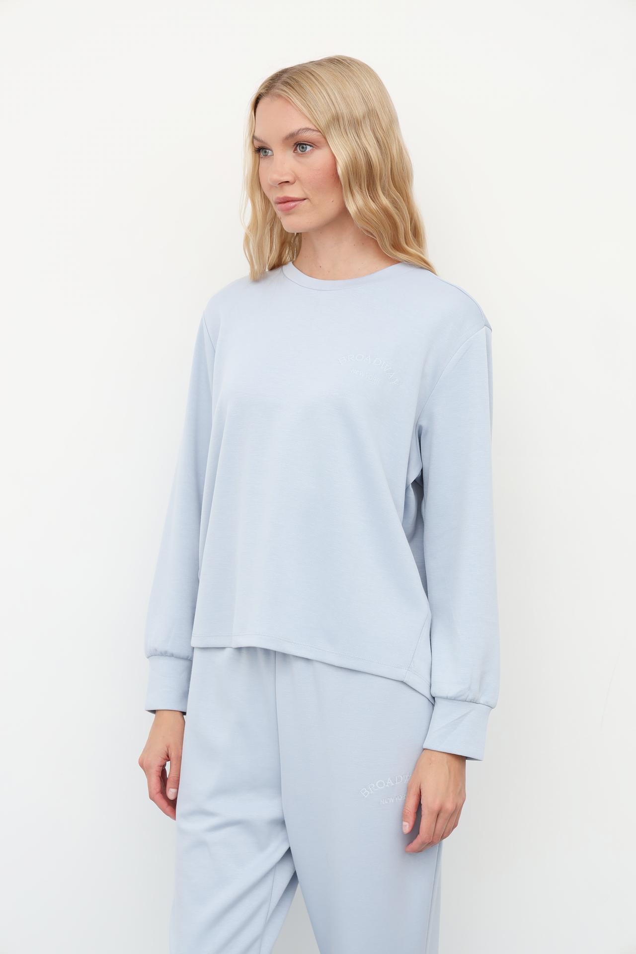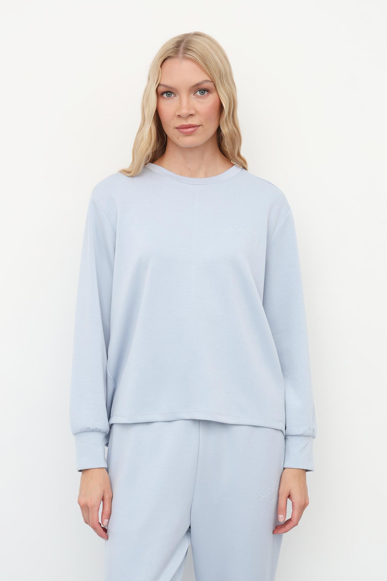 Пуловер Broadway - идеальный выбор для создания расслабленных и стильных образов. Мягкая ткань и свободный крой обеспечивают максимальный комфорт на весь день. Легкий голубой оттенок придает образу свежесть и нежность. Этот пуловер отлично сочетается с джинсами, леггинсами или спортивными брюками, создавая актуальные повседневные аутфиты.
