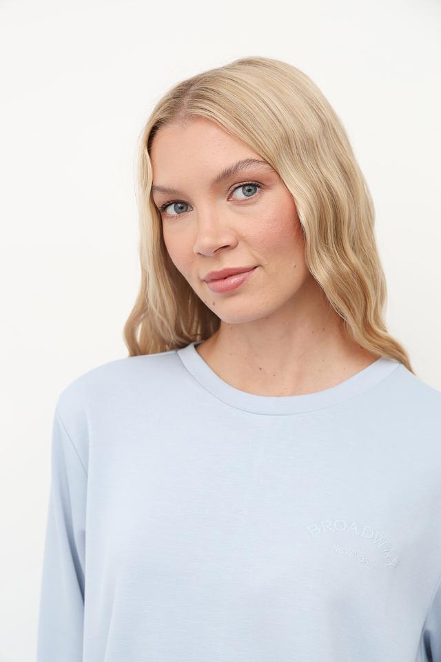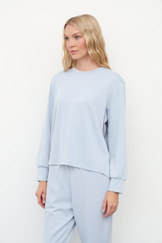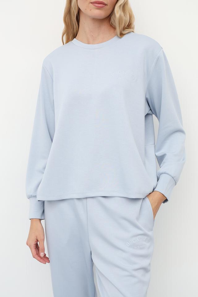 Пуловер имеет классический округлый вырез горловины и длинные рукава с эластичными манжетами. На груди расположен вышитый логотип бренда Broadway New York, который придает изделию особый шарм.
