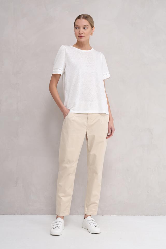 Брюки имеют прямой крой, который подходит для любой фигуры. Классическая посадка на талии обеспечивает удобство и позволяет создавать различные образы. Изготовленные из высококачественного хлопка с добавлением эластана, они приятны к телу и хорошо держат форму.