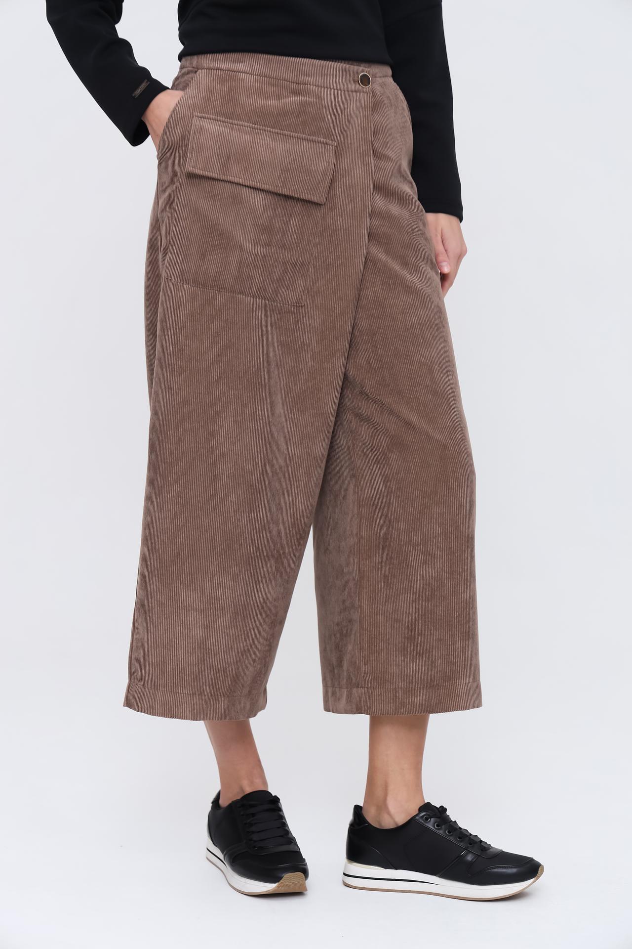 Вельветовые брюки-кюлоты Beatris – стильное и комфортное решение для вашего гардероба. Свободный крой и приятная к телу ткань (80% хлопок, 20% полиэстер) делают их идеальными для повседневной носки. Оригинальный дизайн с запахом и накладным карманом добавляет образу изюминку.