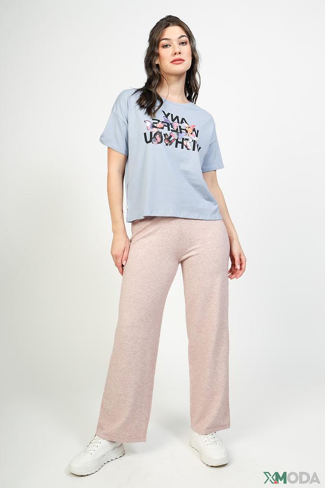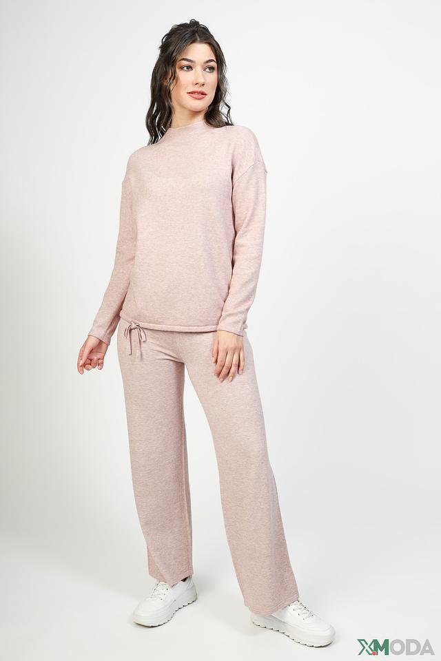 Брюки имеют прямой крой и эластичный пояс, который обеспечивает комфортную посадку по фигуре. Нежный пудровый цвет делает их универсальными и легко сочетаемыми с различными элементами одежды.