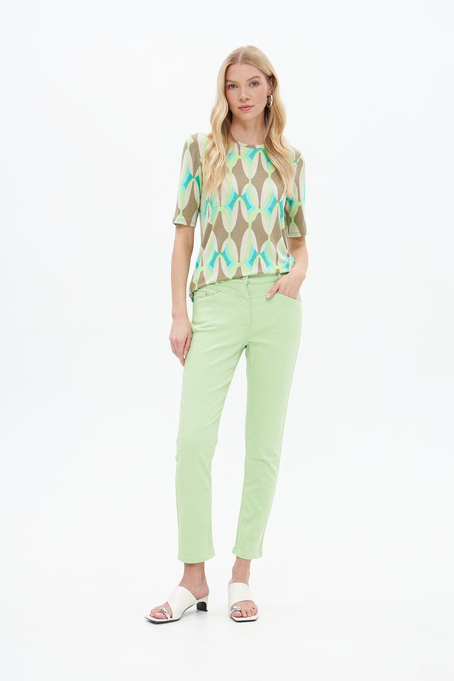 Женские брюки от Betty Barclay классического прямого кроя, выполнены в нежном мятном оттенке. Модель имеет пояс на эластичной резинке, обеспечивающий комфортную посадку по фигуре.