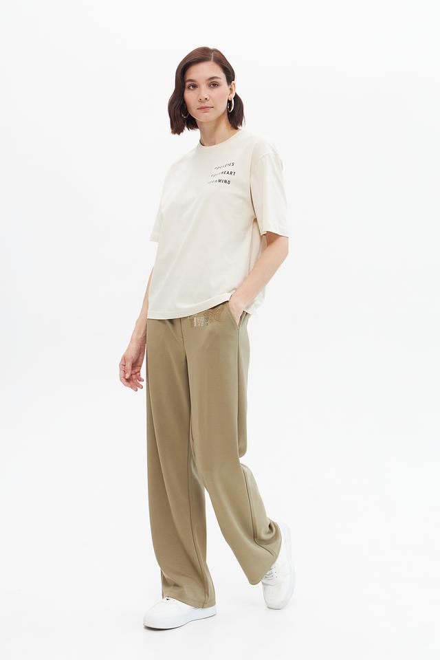 Модель имеет высокую посадку и эластичный пояс, что обеспечивает идеальную посадку по фигуре. Наличие задних карманов добавляет функциональности. Брюки идеально подойдут для создания повседневных образов, а также для работы или учебы.