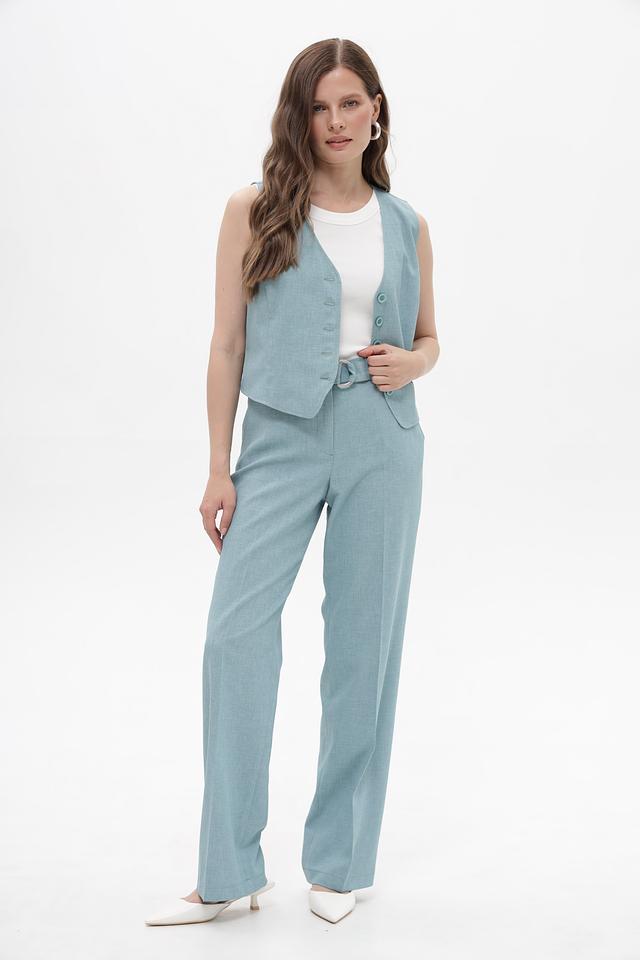 Классические брюки Bianca мятного цвета, выполнены из 100% полиэстера. Модель прямого кроя с завышенной талией и широким поясом, который дополнен стильной металлической пряжкой. Состав: полиэстер 100%