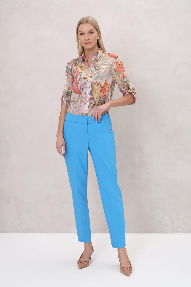 Представляем вашему вниманию классические брюки от бренда Bianca. Эта модель выполнена в ярком голубом цвете, который добавит свежести и оригинальности вашему образу.