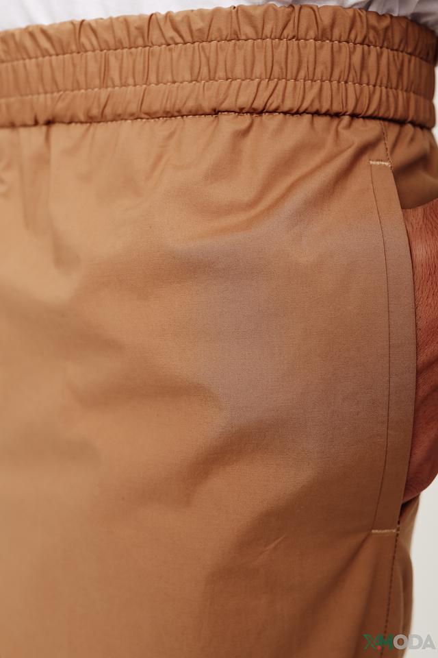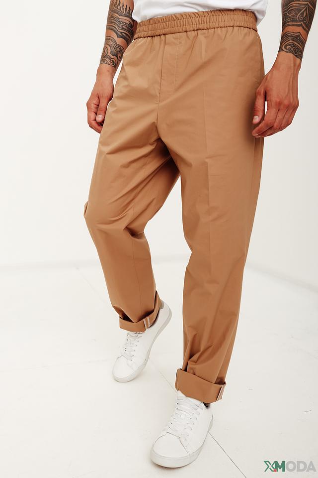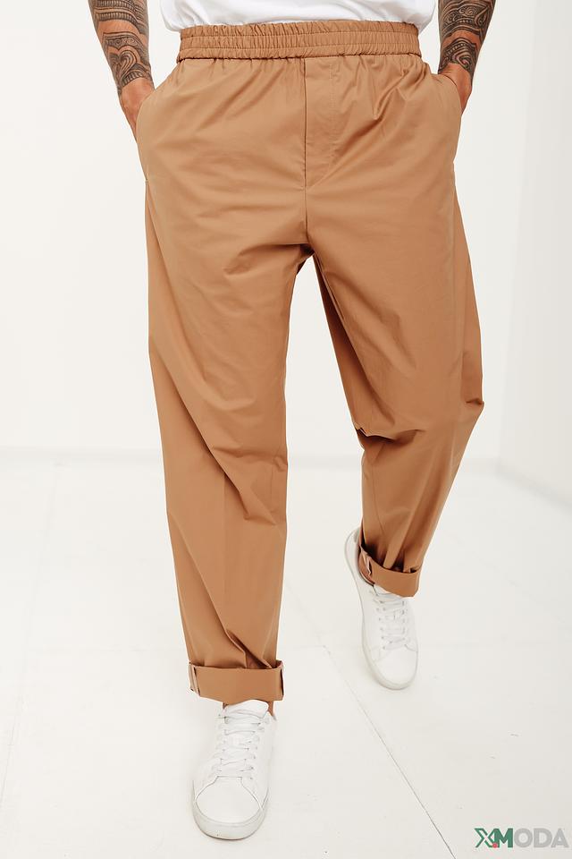Особенностью данной модели является эластичный пояс с регулируемой кулиской, который обеспечивает надежную фиксацию и комфорт в течение всего дня. Брюки имеют два боковых кармана и задние карманы с клапанами. Подвернутые штанины добавляют образу непринужденности.