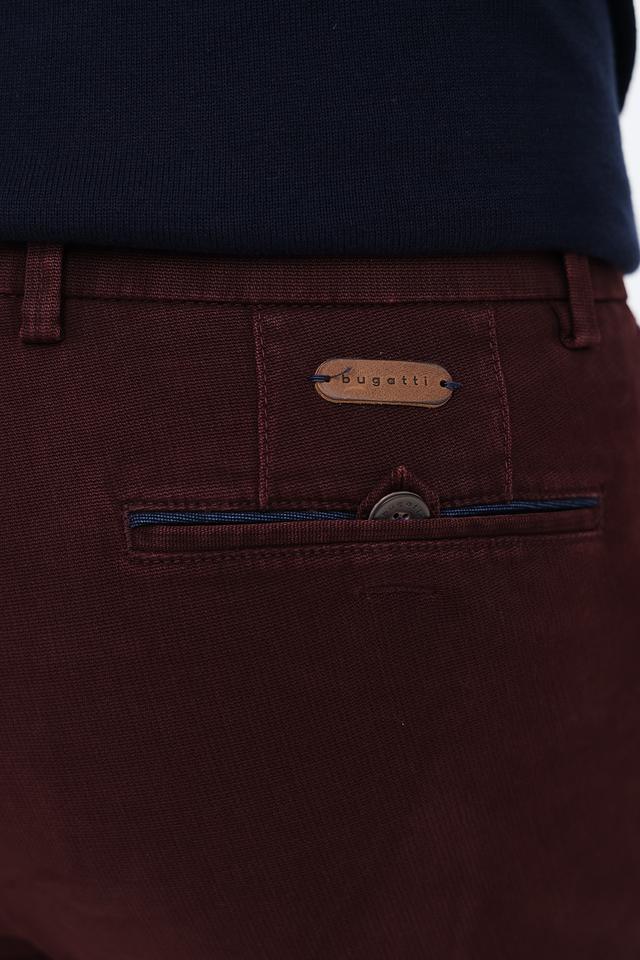 Мужские брюки от Bugatti выполнены в насыщенном бордовом цвете. Модель отличается классическим кроем с прямыми штанинами, что обеспечивает комфортную посадку и свободу движений.