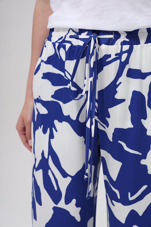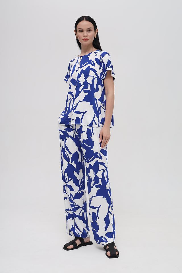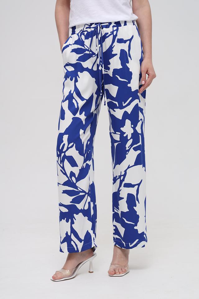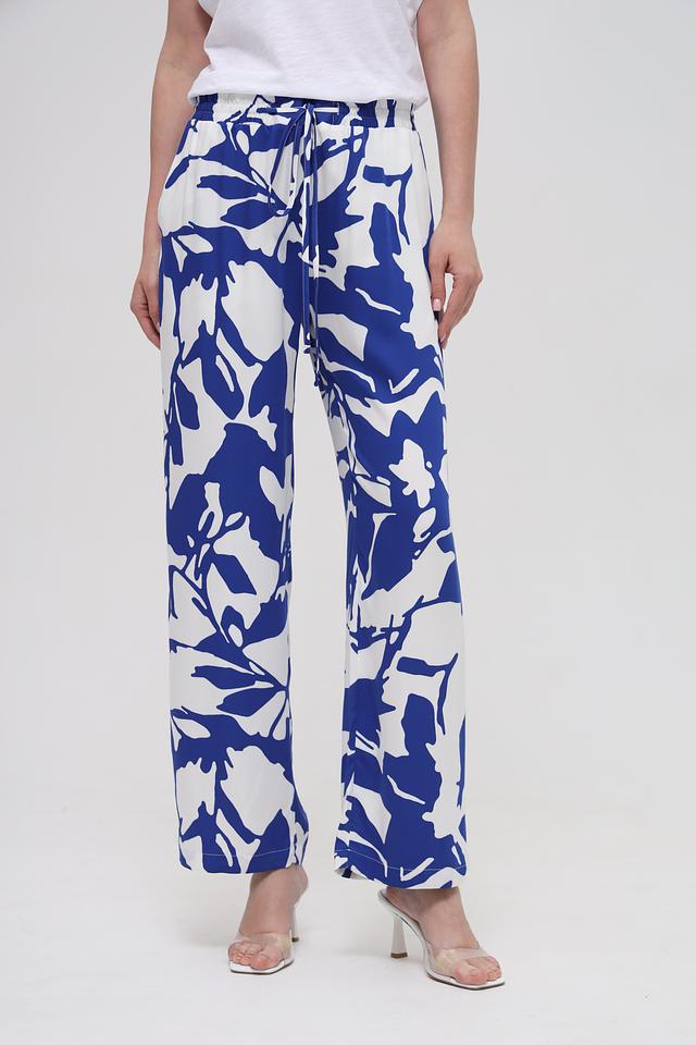 Брюки отличаются свободным кроем и завышенной талией, что делает их универсальными для различных типов фигуры. Эластичный пояс с кулиской обеспечивает идеальную посадку. Яркий цветочный принт добавляет образу женственности и оригинальности.