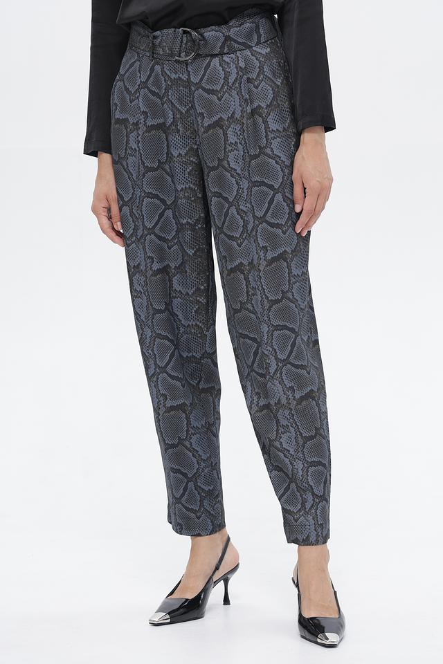 Эти брюки от Catnoir станут ярким акцентом вашего гардероба. Модель выполнена в сером цвете с эффектным принтом, имитирующим кожу рептилии.