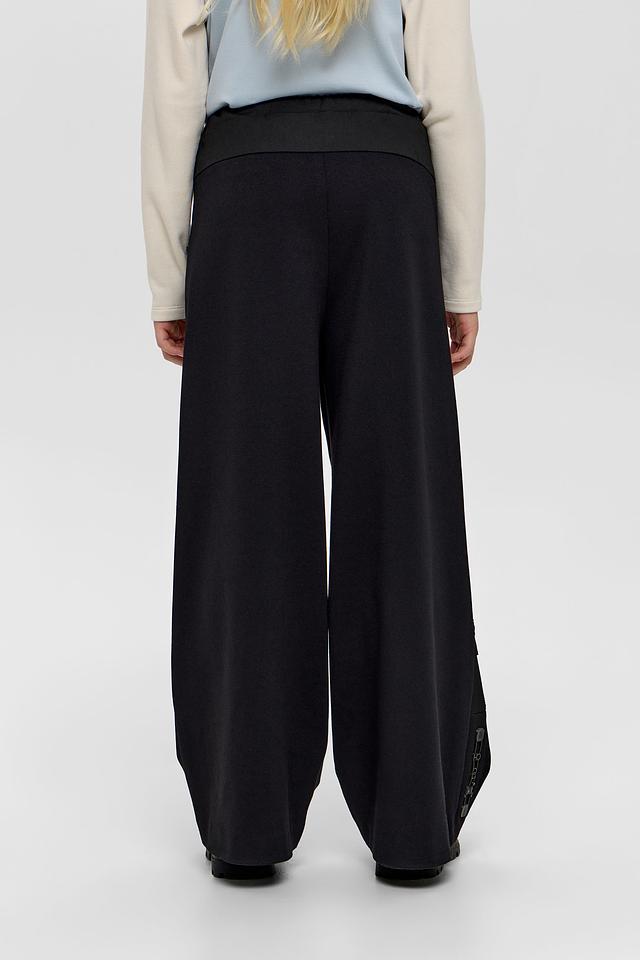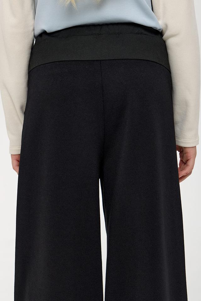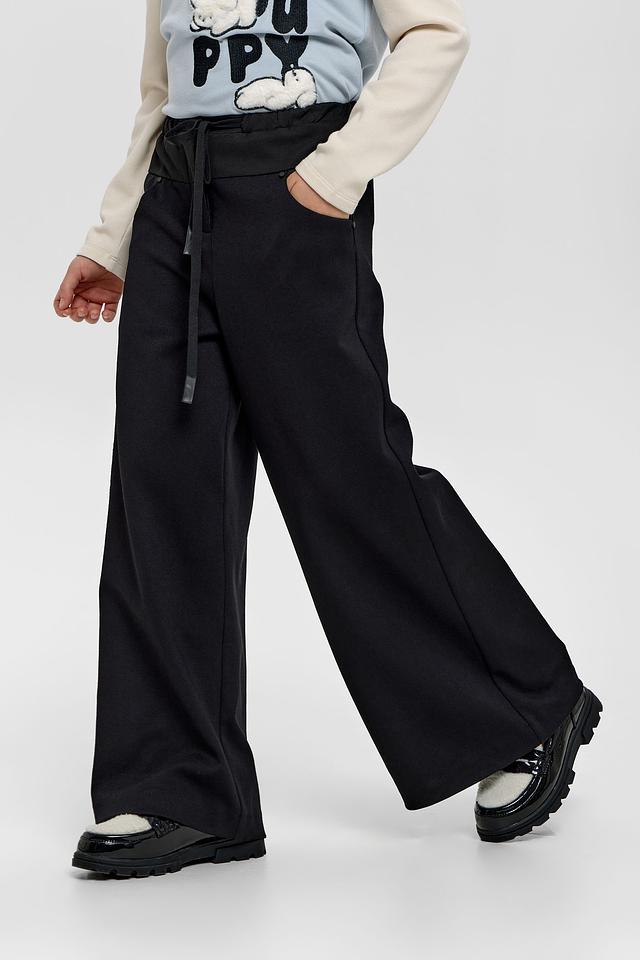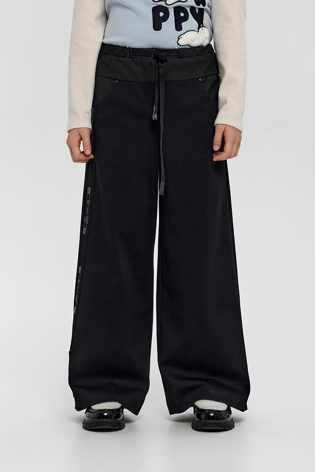 Чёрные брюки от Choupette — стильный выбор для юных модниц. Модель выполнена в широком крое с эластичным поясом и удобным шнурком для регулировки. Декоративная полоса с логотипом добавляет образу оригинальности. Состав: Состав_подкладка вискоза 100%, полиэстер 64%, хлопок 33%, полиуретан 3%