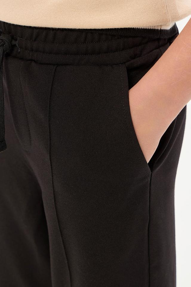 Брюки изготовлены из высококачественной вискозы (64%), полиэстера (32%) и полиуретана (4%). Такое сочетание материалов обеспечивает мягкость, приятные тактильные ощущения и долговечность изделия. Эластичный пояс с кулиской гарантирует идеальную посадку по фигуре.