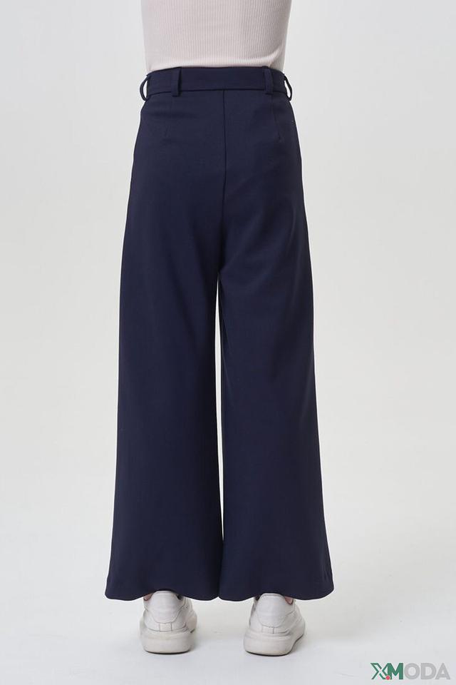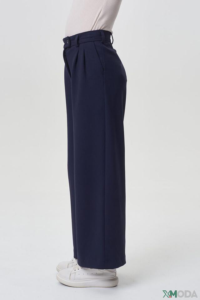 Брюки имеют широкий крой, обеспечивающий свободу движений, и классическую посадку на талии. Застежка на молнии и пуговице гарантирует надежную фиксацию. На брюках предусмотрены боковые карманы, удобные для хранения мелочей.