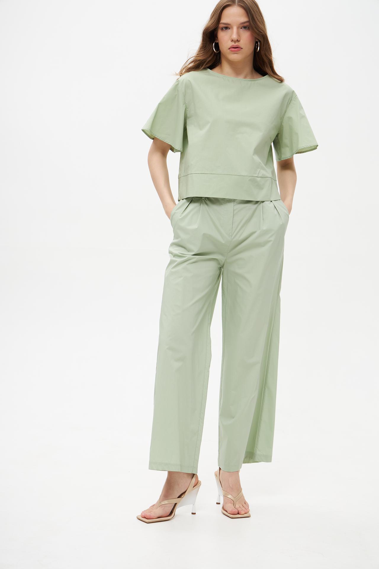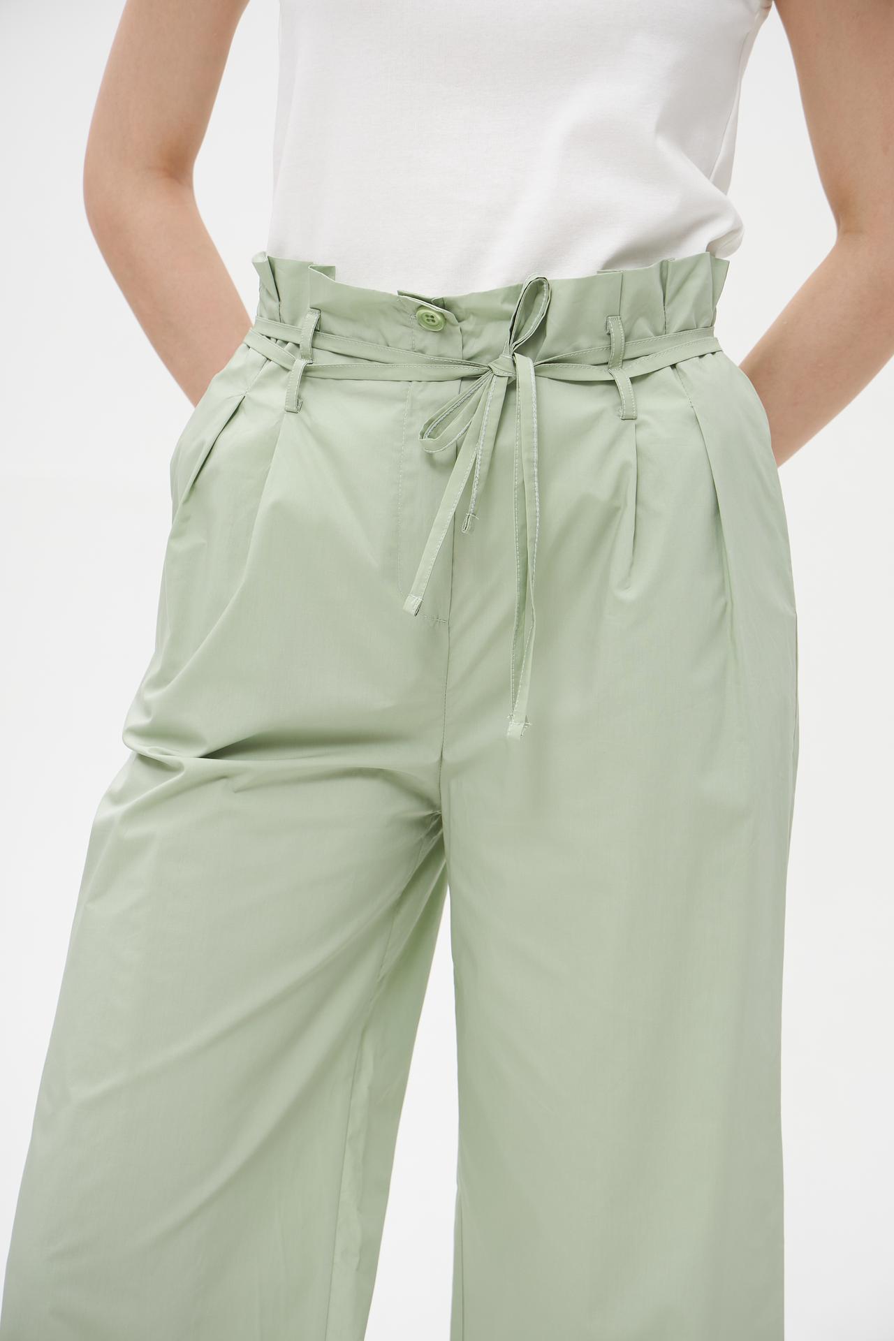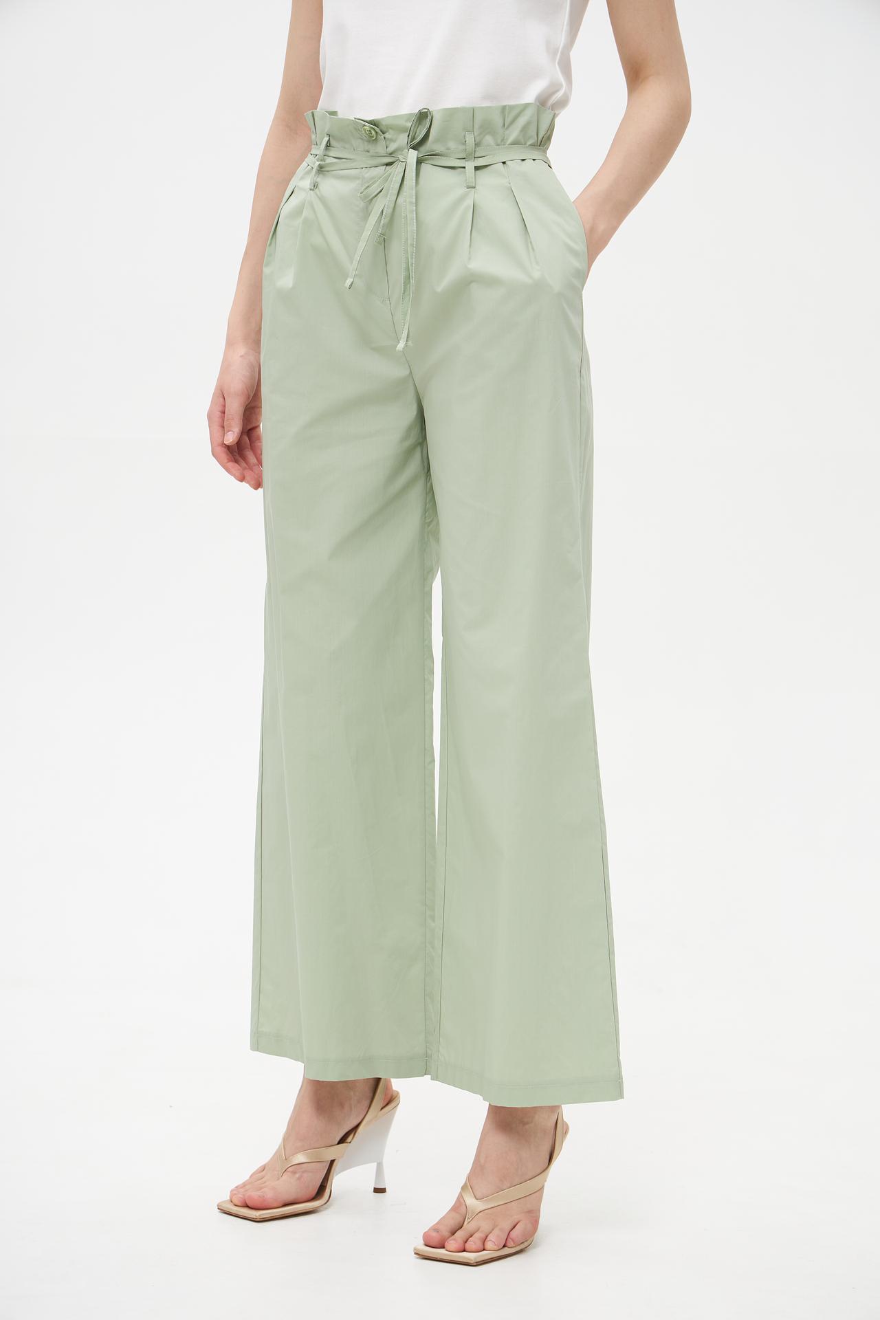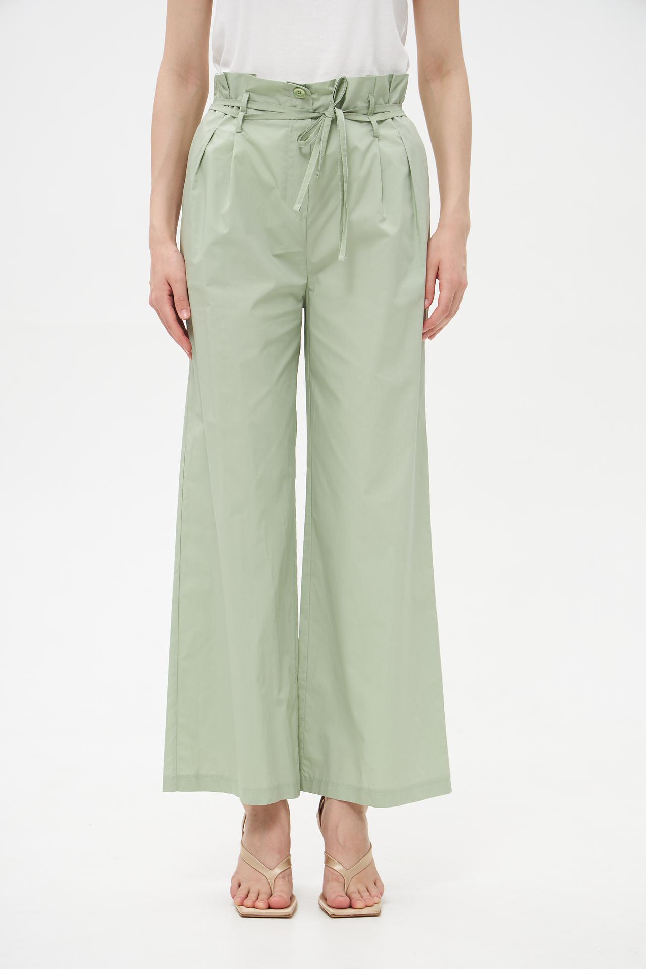 Брюки Croche палаццо, с поясом, светло-зеленые