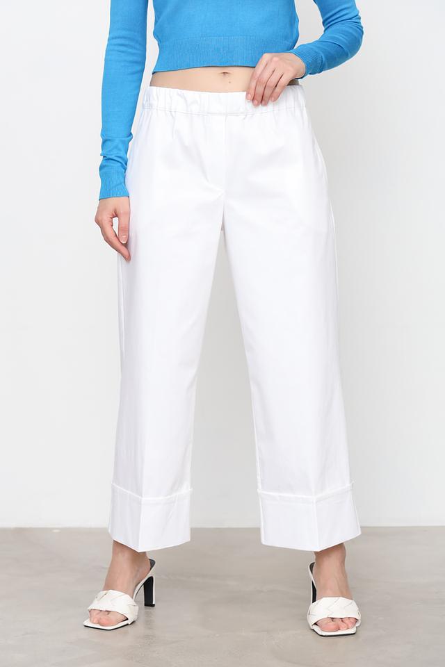Белые брюки D. Exterior палаццо с завышенной талией и эластичным поясом станут отличным дополнением к вашему гардеробу. Модель выполнена из хлопка с добавлением эластана, что обеспечивает комфорт и свободу движений. Состав: хлопок 96%, Состав_подкладка ацетат 68%, Состав_подкладка эластан 32%, эластан 4%