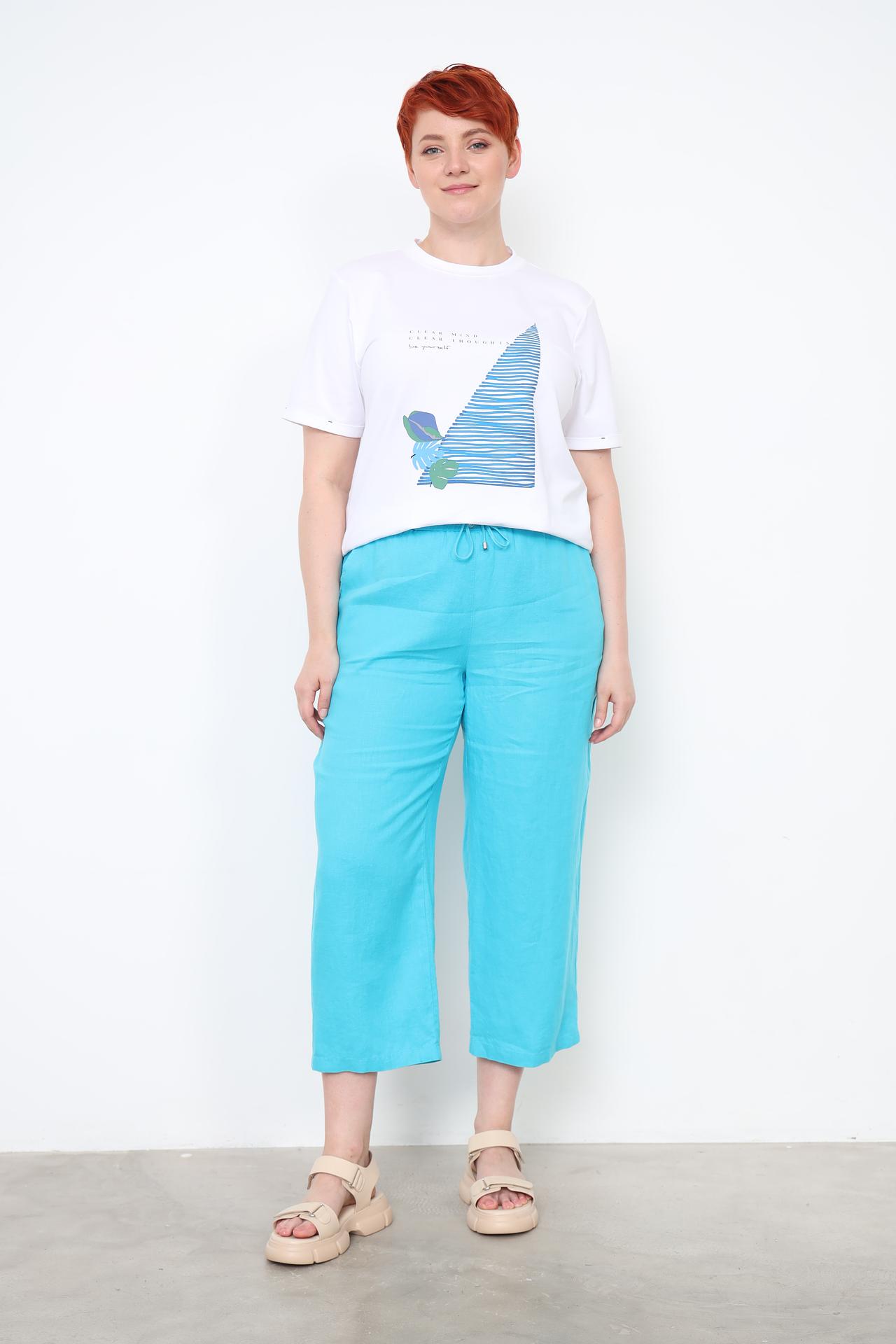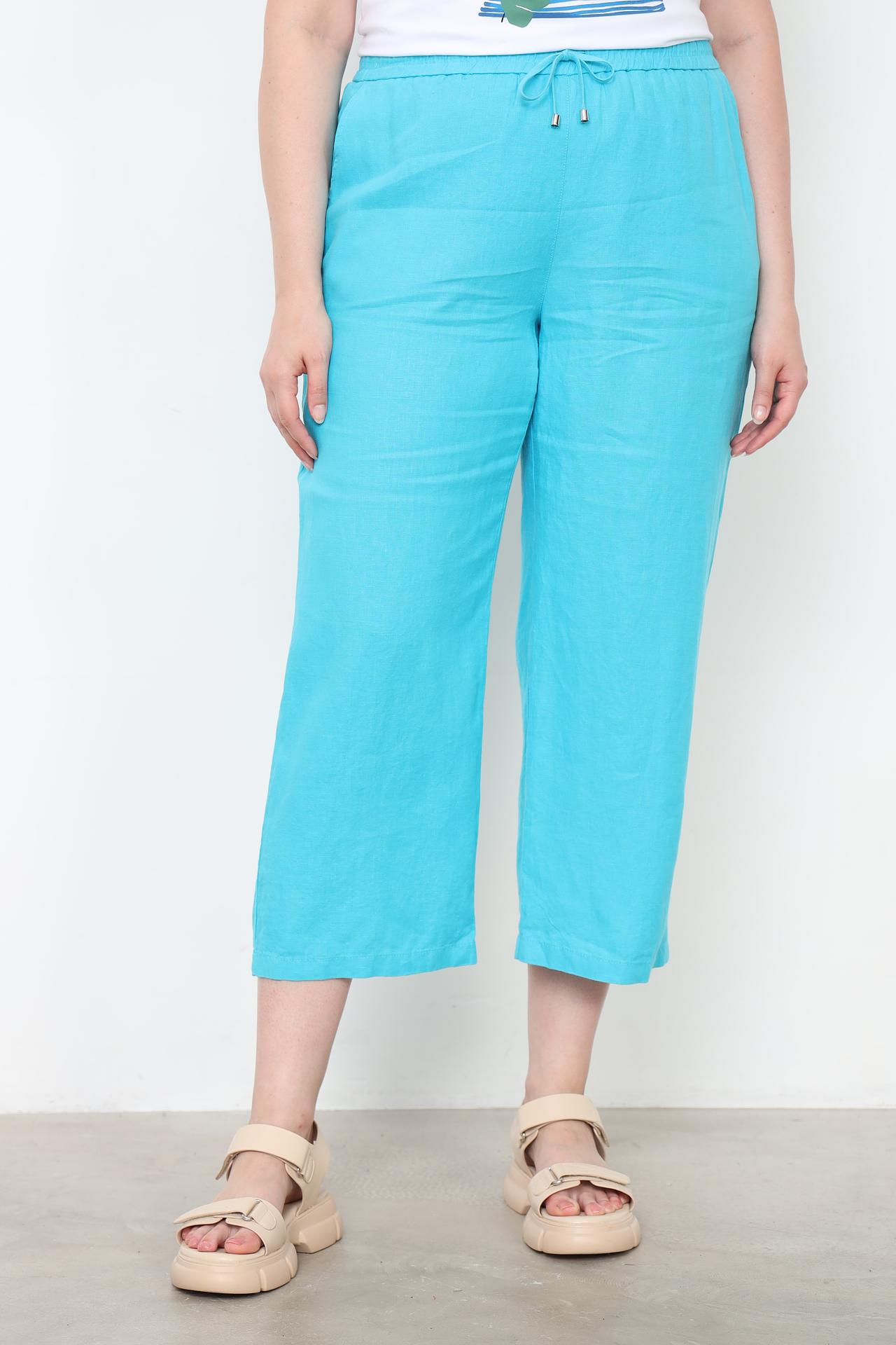 Благодаря свободному крою и эластичной талии на кулиске, брюки обеспечивают отличную посадку и свободу движений. Натуральный лен позволяет коже дышать, обеспечивая комфорт даже в самую жаркую погоду. Универсальный бирюзовый цвет легко сочетается с различными топами и обувью, позволяя создавать разнообразные образы.
