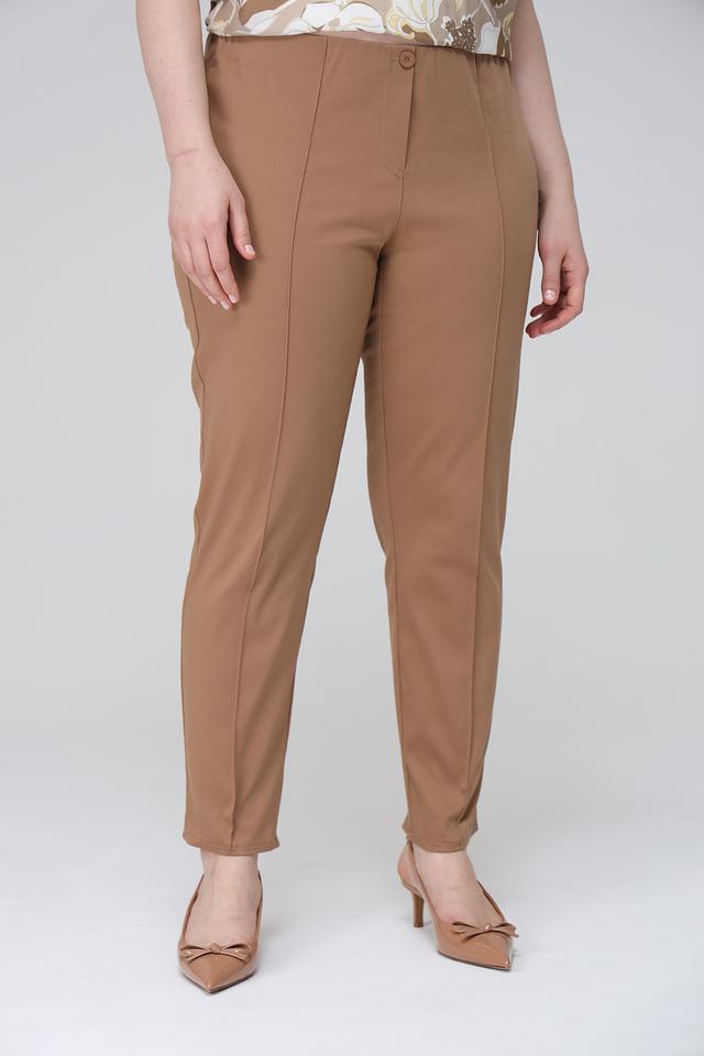 Брюки имеют стандартную посадку на талии, застежку на пуговицу и молнию, а также боковые карманы. Ткань, состоящая из хлопка, полиэстера и эластана, приятна на ощупь, хорошо держит форму и обеспечивает удобство в носке.