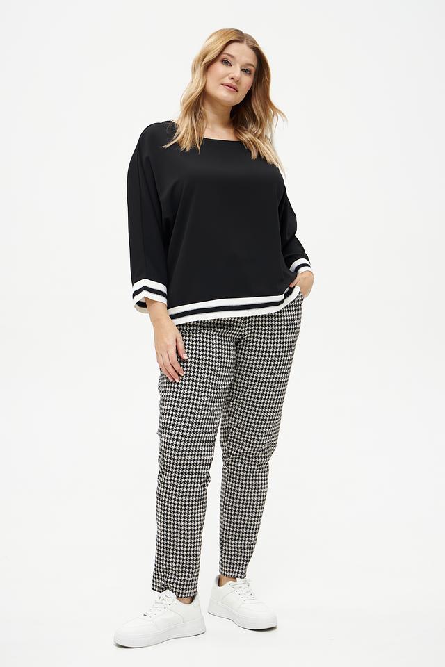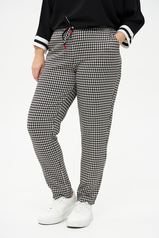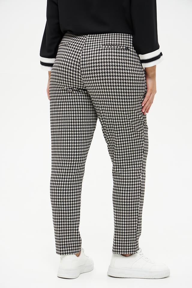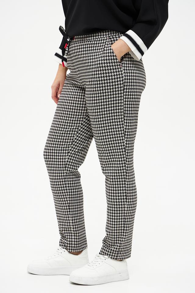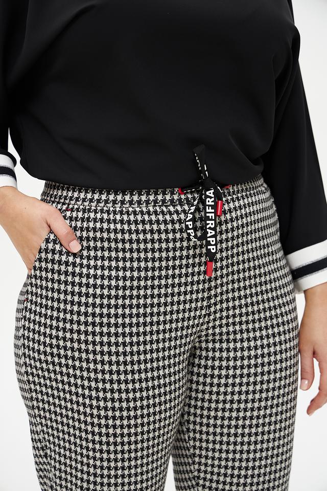 Женские брюки Frapp чёрно-белого цвета с классическим клетчатым принтом. Модель выполнена из мягкой вискозы с добавлением полиамида и эластана для комфорта и хорошей посадки. Состав: вискоза 58%, полиамид 37%, эластан 5%