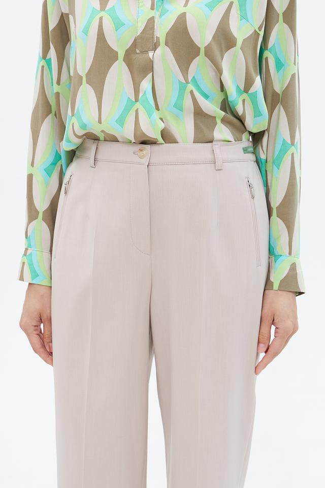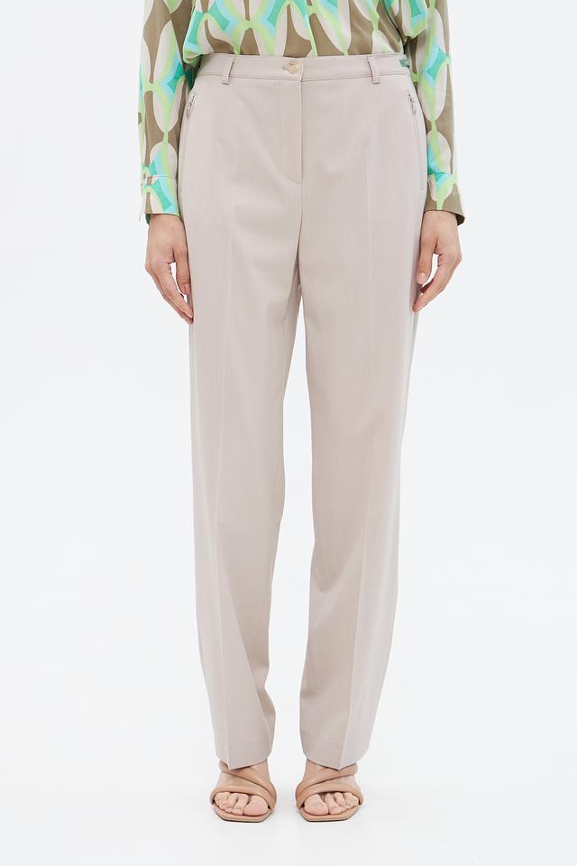 Женские брюки Gardeur бежевого цвета прямого кроя, выполнены из смесовой ткани с добавлением шерсти и эластана. Модель отличается удобной посадкой и практичностью. Состав: полиэстер 54%, шерсть 41%, эластан 5%