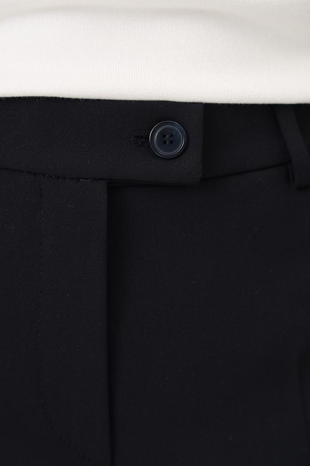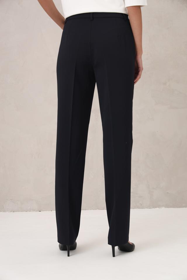 Брюки имеют прямой крой, который обеспечивает комфортную посадку и свободу движений. Ткань, состоящая из полиэстера, шерсти и эластана, приятна на ощупь, хорошо держит форму и практически не мнется.