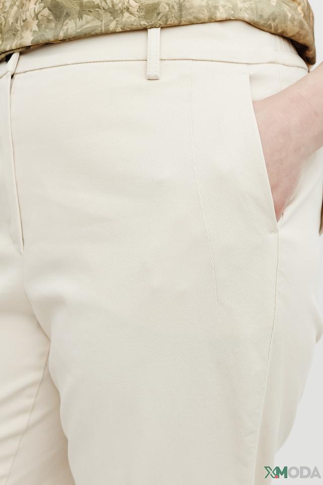 Состав ткани: 58% тенсель, 39% хлопок, 3% эластан. Тенсель придает брюкам мягкость и приятные тактильные ощущения, хлопок обеспечивает воздухопроницаемость, а эластан — небольшую эластичность для свободы движений.