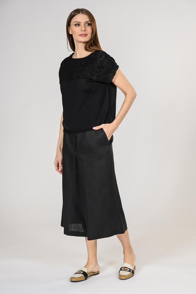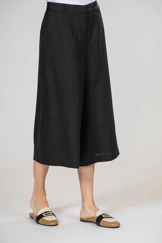 Чёрные брюки-кюлоты Giorgio Grati из 100% льна — стильное и комфортное решение для летнего гардероба. Прямой крой и высокая посадка обеспечивают свободу движений и безупречную посадку по фигуре. Состав: лен 100%
