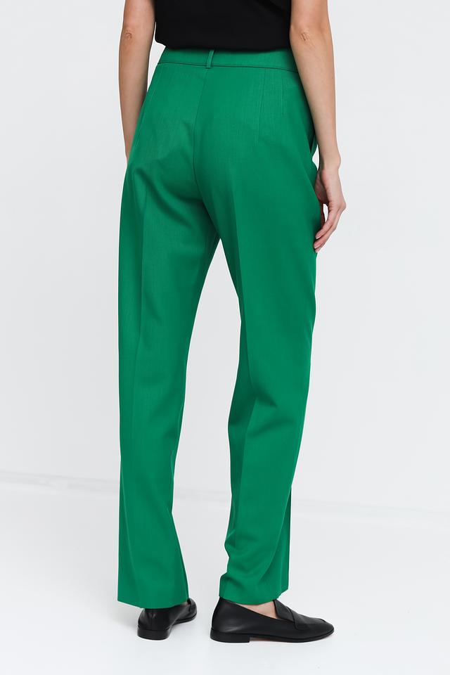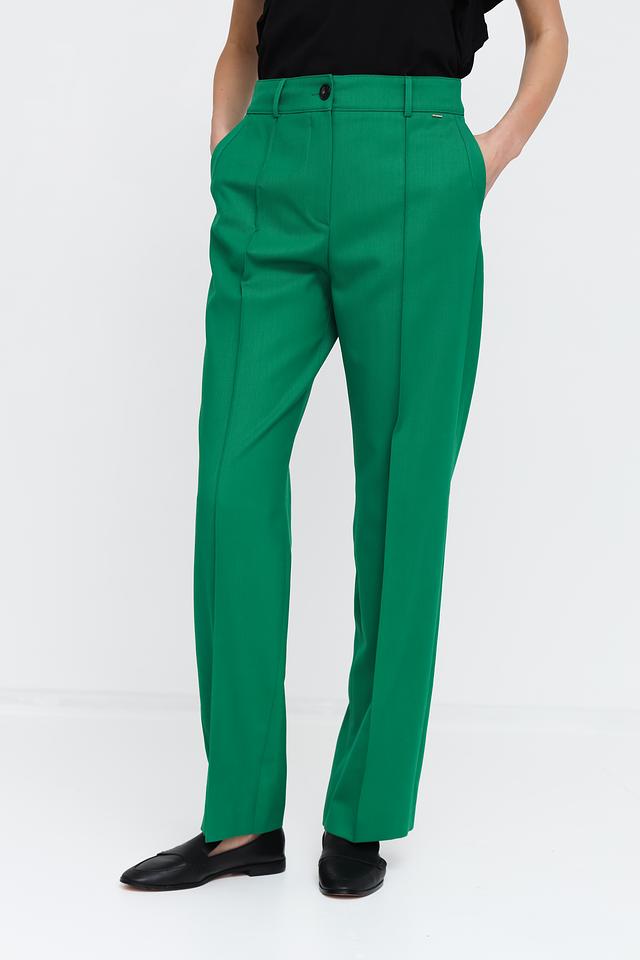Зелёные брюки от Joop! — элегантная модель прямого кроя с высокой посадкой. Классический дизайн и качественные материалы делают эти брюки универсальным дополнением к вашему гардеробу. Состав: полиэстер 54%, шерсть 44%, эластан 2%