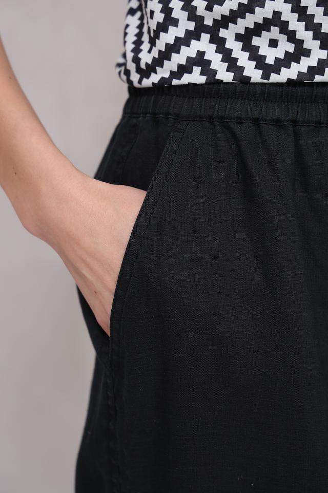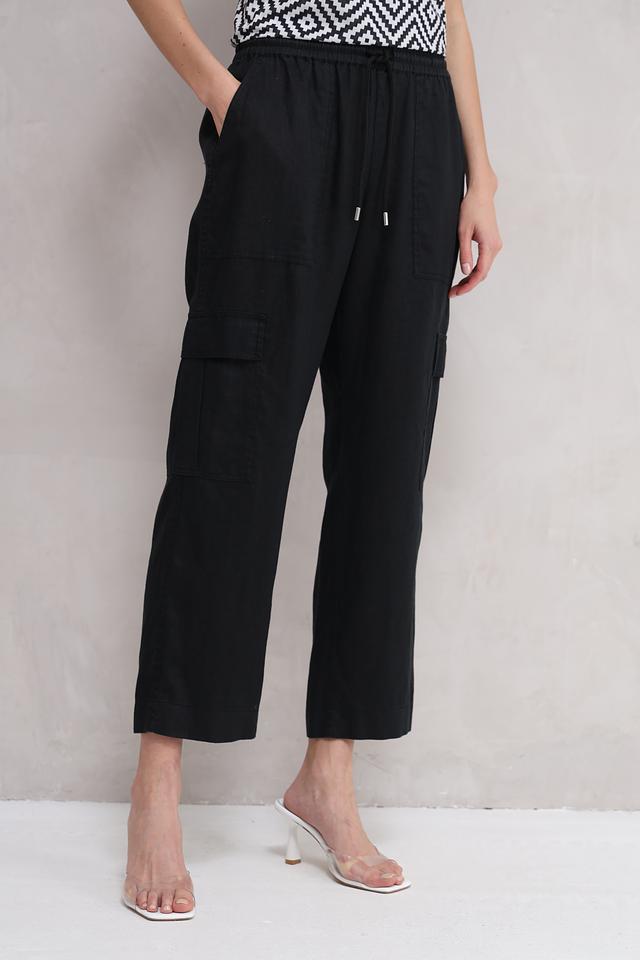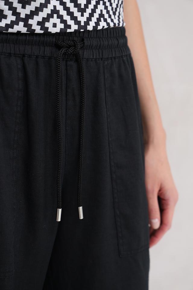 Классический чёрный цвет делает эти брюки универсальными и легко сочетаемыми с различными элементами одежды. Эластичный пояс с кулиской обеспечивает идеальную посадку по фигуре, а боковые карманы добавляют практичности.