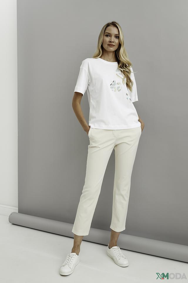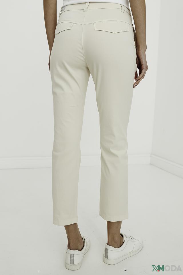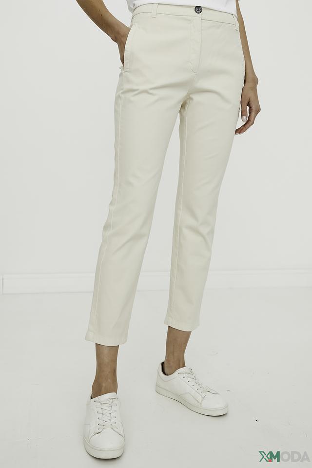 Нежный бежевый цвет брюк легко сочетается с различными элементами одежды, позволяя создавать разнообразные образы – от деловых до повседневных. Состав: хлопок 98%, эластан 2%.