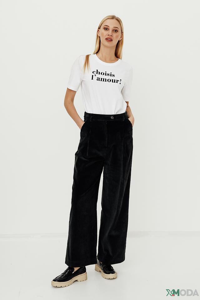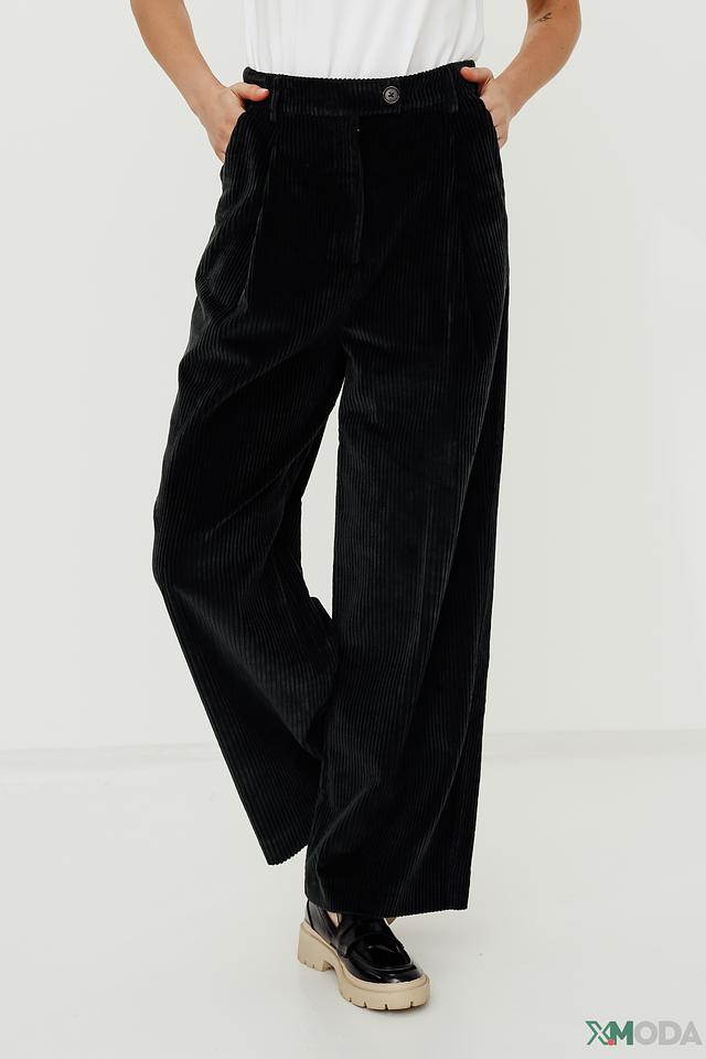 Брюки имеют прямой крой и высокую посадку, что обеспечивает комфортную посадку по фигуре. Декоративные складки на талии добавляют изысканности и подчеркивают силуэт. Застежка на пуговицу и молнию гарантирует надежную фиксацию.