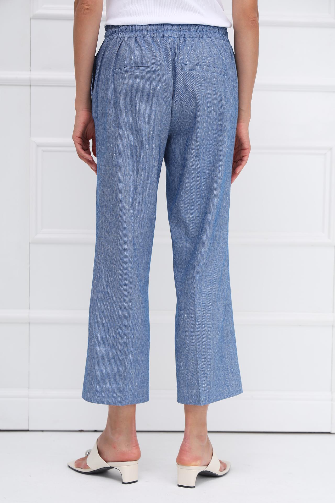 Модная посадка брюк визуально вытягивает силуэт, а удобная кулиска на поясе регулирует посадку по фигуре. Прямой крой подходит для любого типа фигуры. Брюки идеально сочетаются с футболками, блузками и жакетами, создавая стильный образ как для повседневной жизни, так и для офиса.
