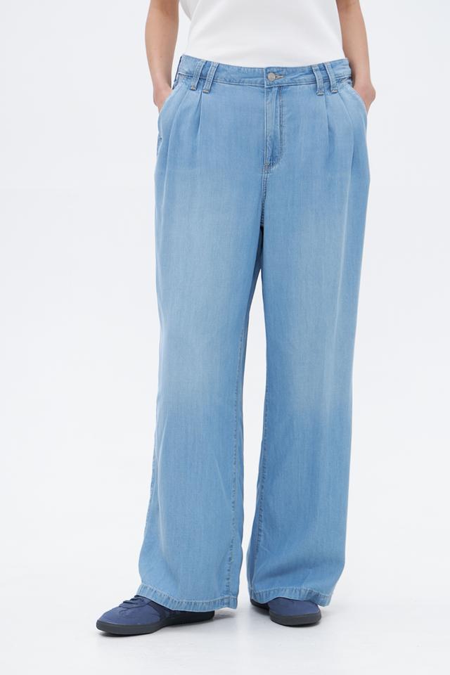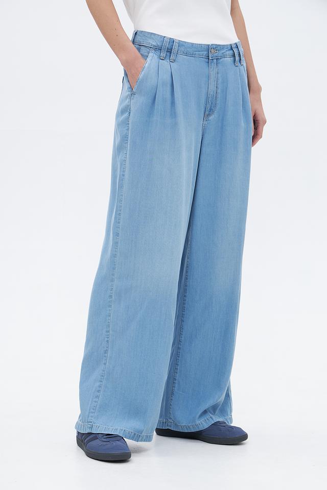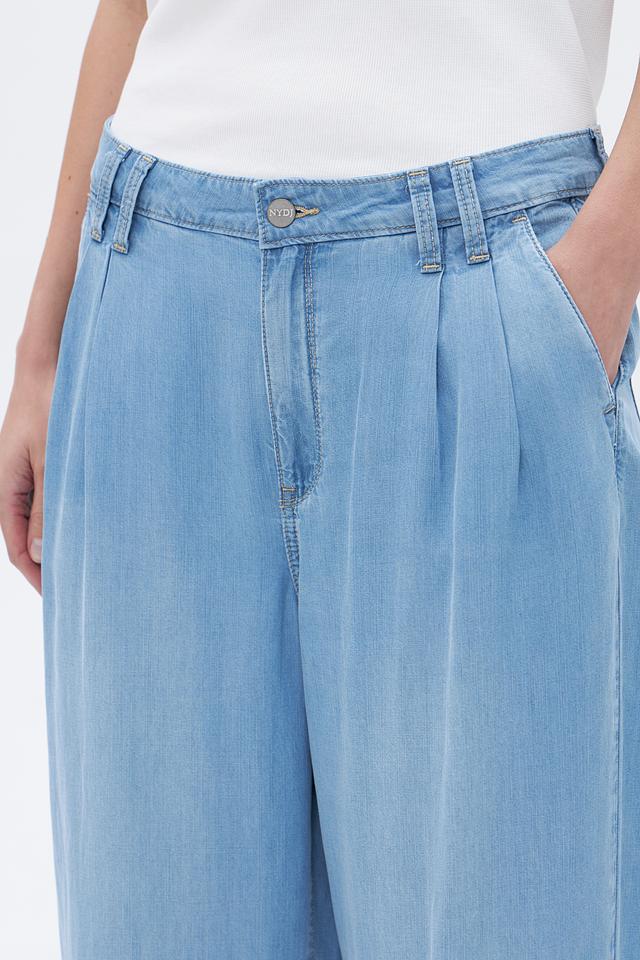 Женские брюки палаццо NYDJ голубого цвета из 100% тенсела. Модель с высокой посадкой, широкими штанинами и складками для комфортной посадки и создания стильного образа. Идеальный выбор для повседневной носки. Состав: тенсель 100%