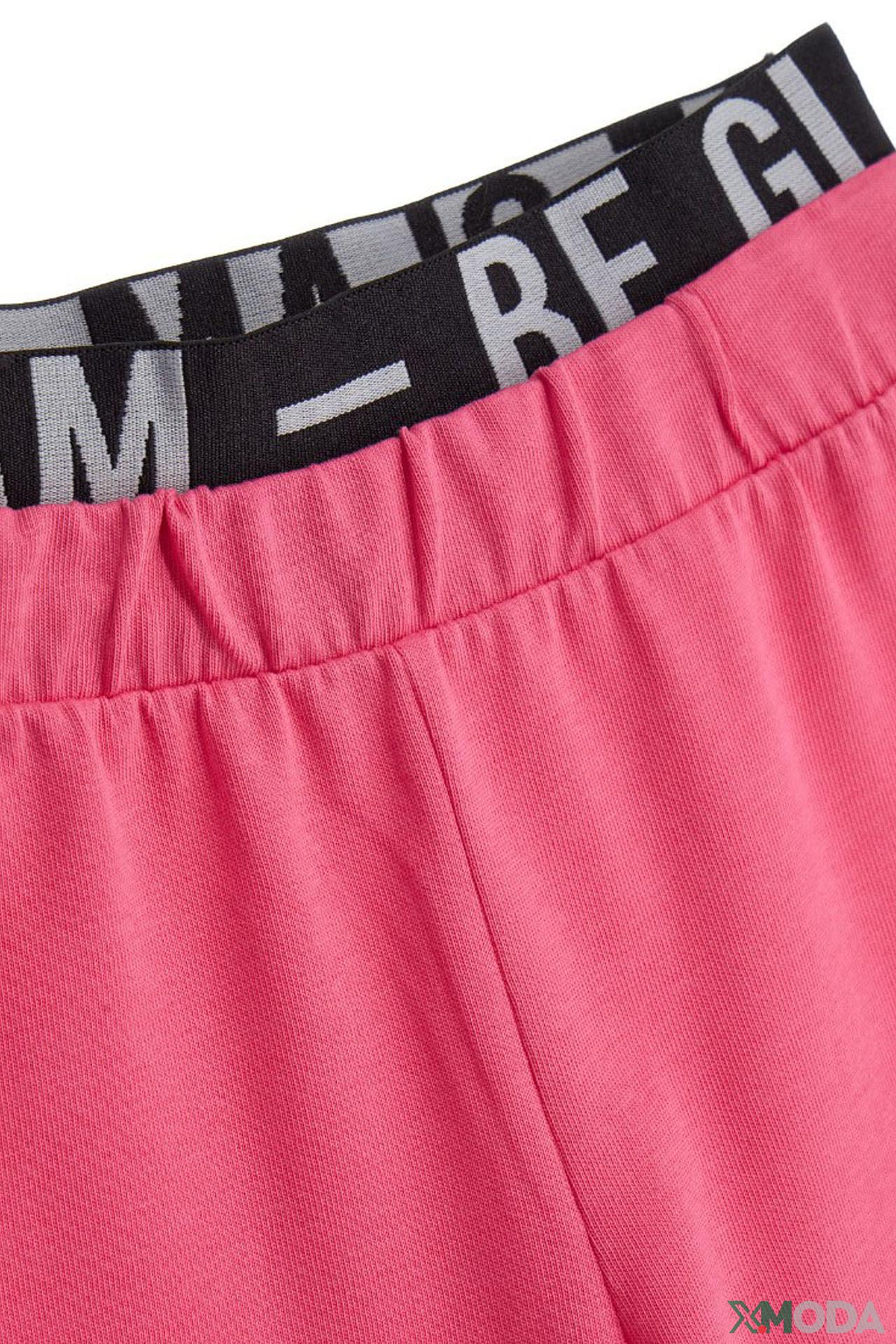 Розовые брюки с широким эластичным поясом, декорированным надписью, легко надеваются и не сковывают движения. Натуральный хлопок приятен к телу, позволяет коже дышать и не вызывает раздражения. Брюки отлично сочетаются с футболками, толстовками и другими элементами детского гардероба.